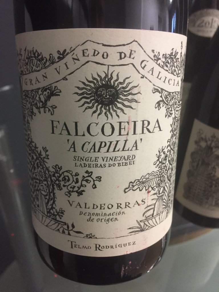 Falcoeira ‘’A Capilla’’, Telmo Rodriguez, Valdeorras, 2015, cépages : Mencia, Brancellao, Souson, Garnacha, $77.25. 4 caisses à venir en succursale.