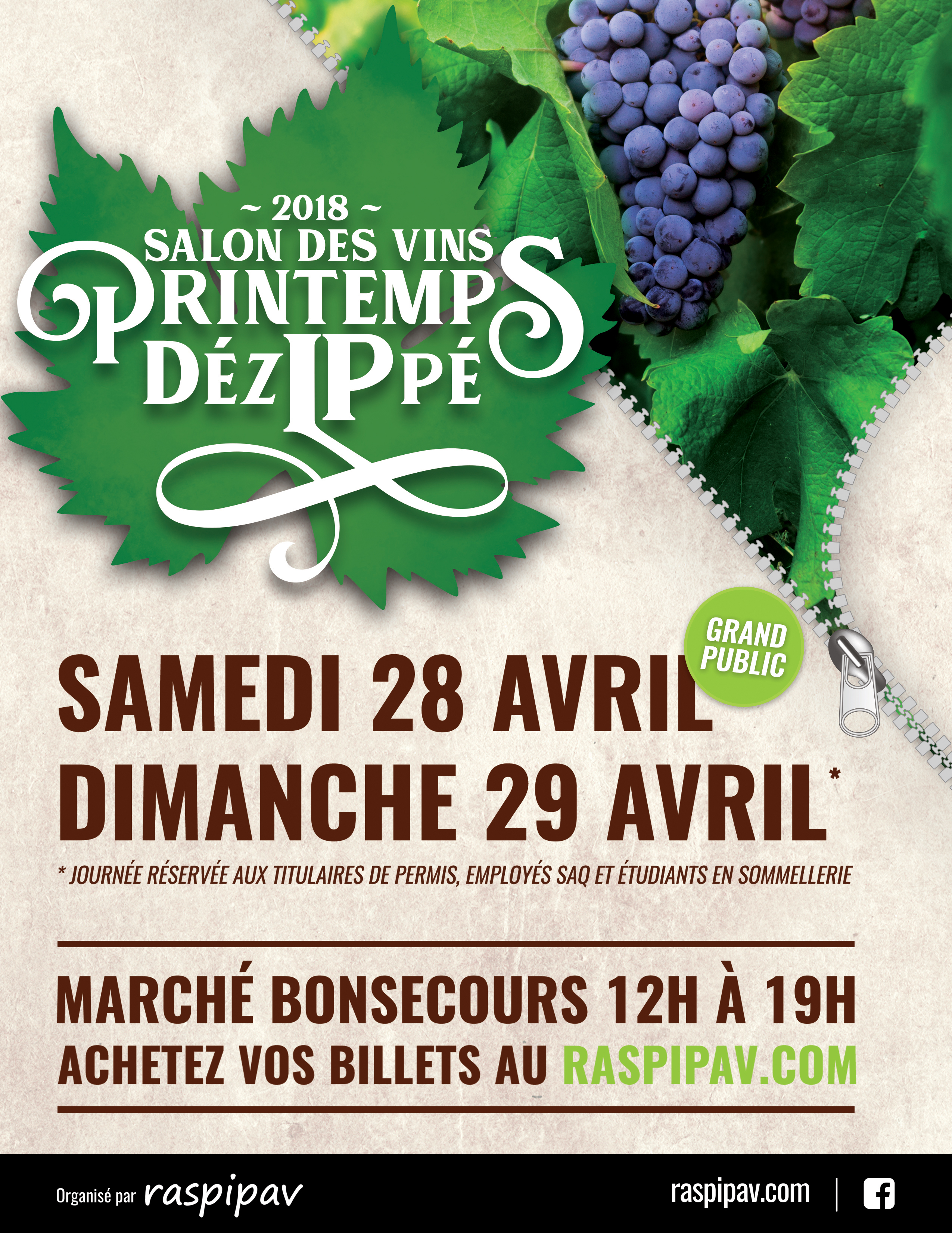 En fin de semaine avait lieu le salon DézIPpé de Raspipav. C’est en fait le salon des agences d’importation privée de vins qui sont regroupées sous l’association Raspipav (les spécialistes de l’importation privée) avec environ 45 agences qui en font partie . Ces vins ne sont pas disponibles dans les succursales de la SAQ et doivent être commandés via ces agences.