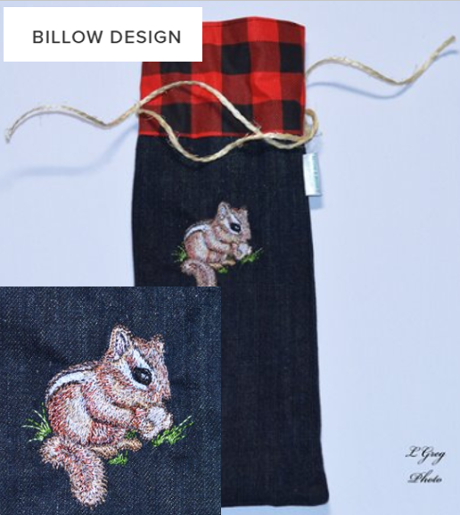 Et oui! Je suis maniaque de petits Suisses (Tamyas rayés). Je demeure dans les Laurentides et on en a plein sur notre terrain. Mon fils et sa copine, le sachant, ont demandé à Billow Design de produire un sac personnalisé avec un dessin de petit Suisse. Aucun problème semble-t-il puisqu’elles (Joanne et Marie-Lyne) l’ont produit sans problème!! Je vous en parle parce qu’évidemment on parle de vin, mais aussi parce que je trouve le concept super intéressant. En plus de personnaliser vos sacs, vous pouvez en acheter à partir de motifs existants.