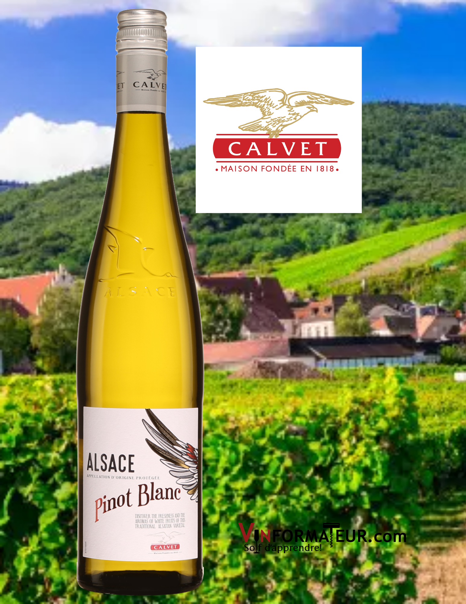 Ce Pinot Blanc de la maison Calvet provient de la région délimitée par l’AOC Alsace. Une fois la récolte effectuée les raisins subissent une fermentation alcoolique traditionnelle en cuve inox qui dure environ d’une à deux semaines. Le vin est ensuite soutiré, filtré et embouteillé.