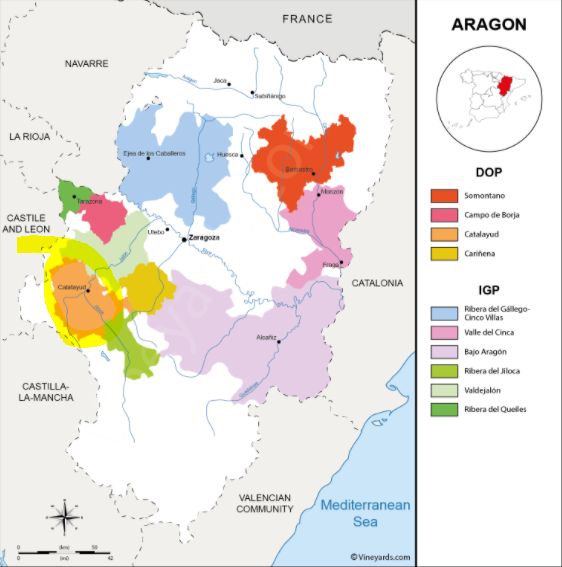 La région de Calatayud possède un terroir extrême particulièrement unique. La combinaison d’altitudes élevées (de 800 à 1,100 m.), de sols d’ardoise et d’un climat drastique se combinent pour créer un mésoclimat totalement unique. En tant que région la plus élevée d’Espagne pour la production de grenache, Calatayud connaît fréquemment des variations de température de 45 ° F entre le jour et la nuit.