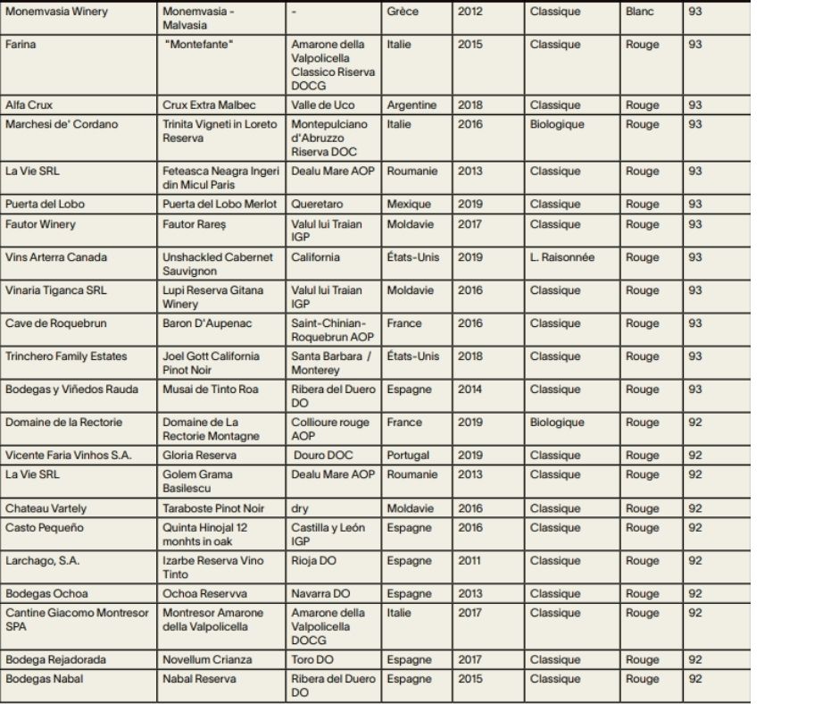 Voici donc les vins qui ont fait partie de cette liste du Top 50 des meilleures notes au concours Sélections Mondiales des Vins Canada 2021.