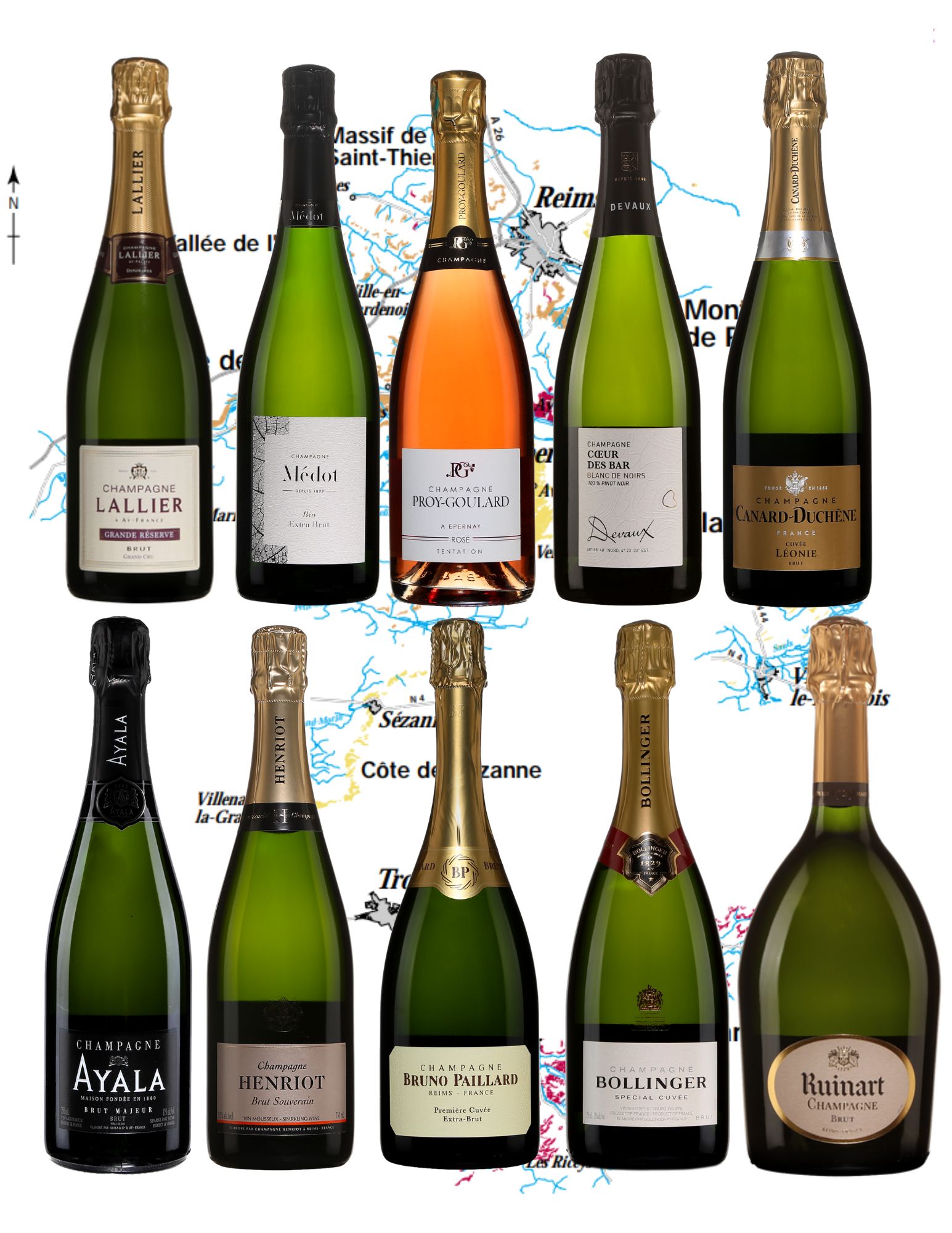 Veuillez trouver ma recommandation de 10 champagnes pour le Temps des Fêtes. Ces champagnes sont tous non millésimés (approx. 90% des ventes de champagnes) qui implique qu’ils sont assemblés avec des vins de réserve de diverses années.