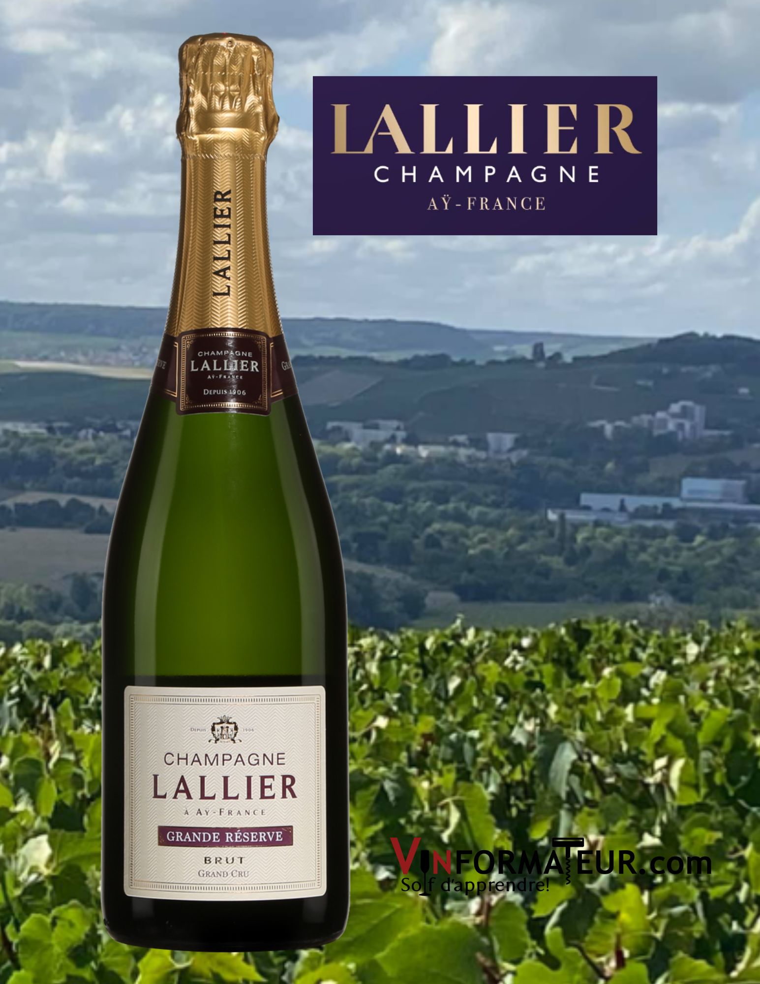 Lallier, Champagne Grande Réserve, Grand Cru, Brut, non millésimé, Montagne de Reims, 50,00$, cépages : Pinot Noir et Chardonnay, sucre : 11 g/l, alc. : 12.5%, code SAQ : 11374251.