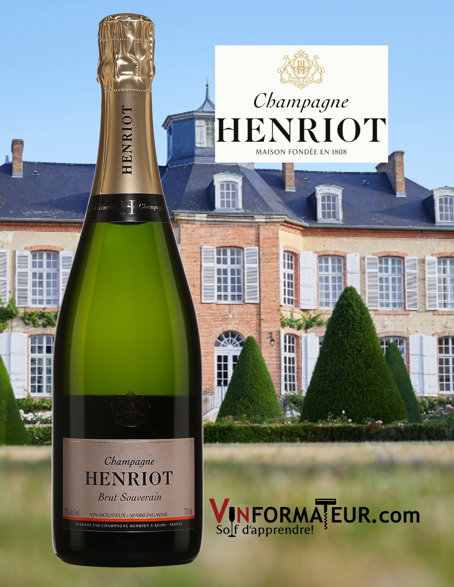 Champagne Henriot, Brut, Souverain, 64,50$, cépage : Chardonnay 50%, Pinot Noir 50%, sucre : 8.5 g/l, alc. : 12%, code SAQ : 13828931.