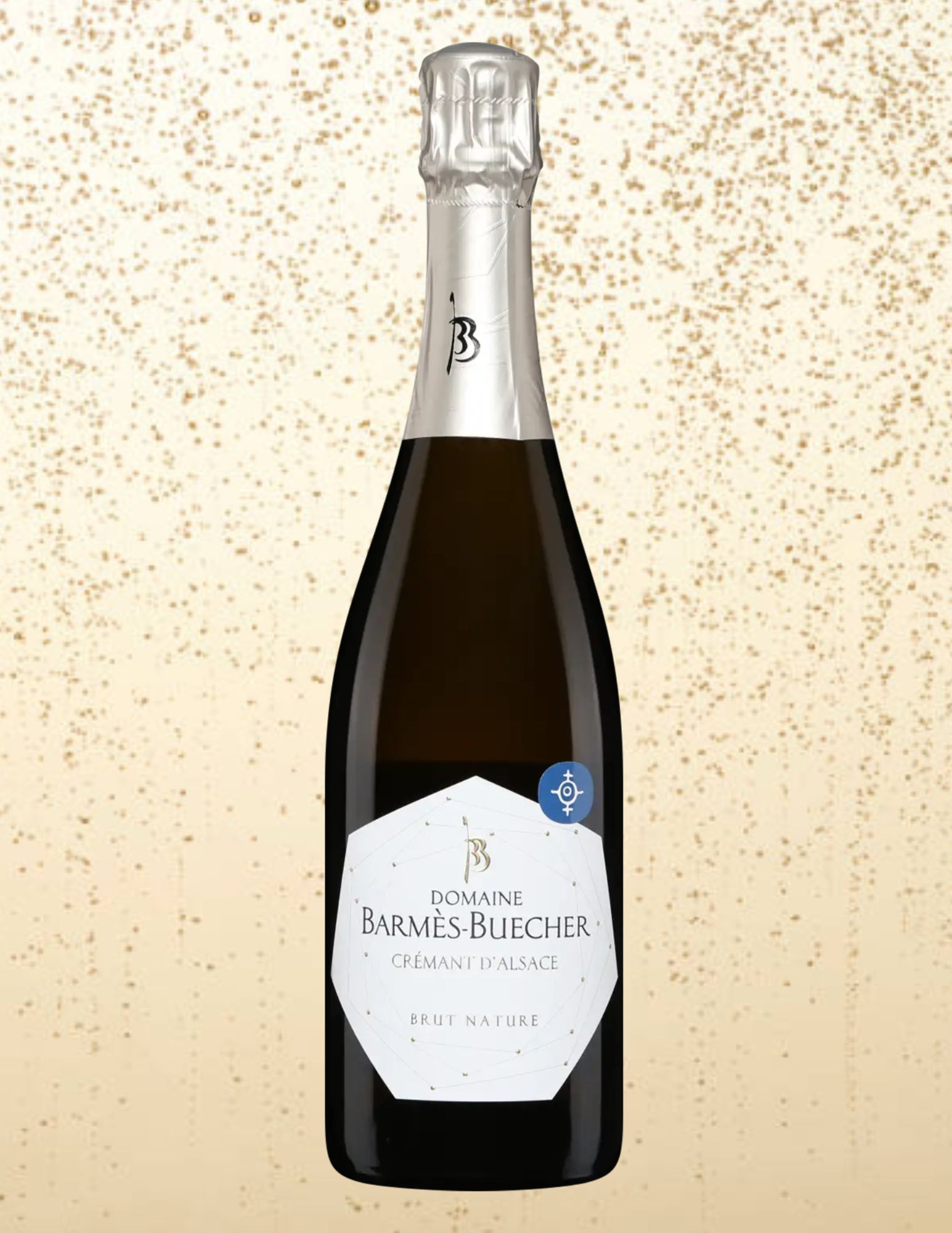 Domaine Barmès-Buecher, Crémant d’Alsace, vin mousseux biodynamique, Brut nature, 2023, 38,75$, cépages : Pinot gris 63 %, Pinot auxerrois 25 %, Chardonnay 12 %, sucre : 1.3 g/l, alc. : 12.5%, code SAQ : 15401974.