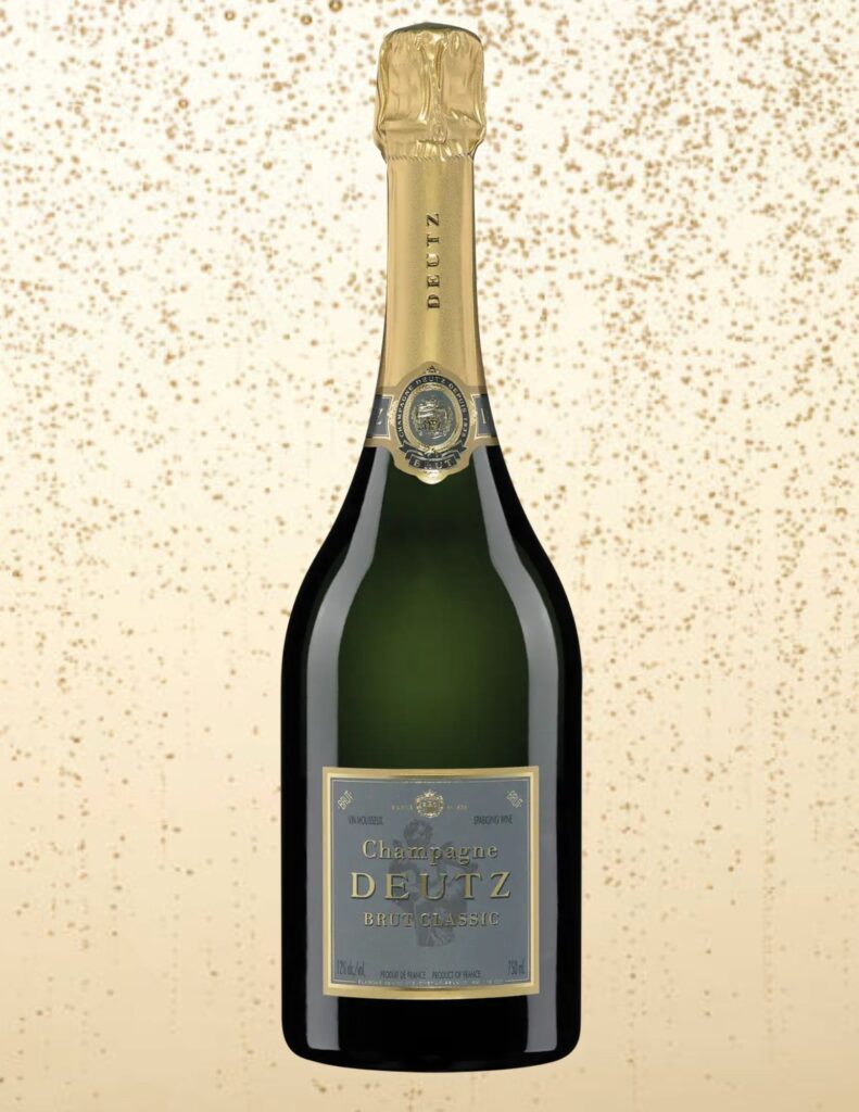 Champagne Deutz, Classic, France, Vallée de la Marne, Brut, 79,75$, cépages : Pinot noir 34 %, Chardonnay 33 %, Pinot meunier 33 %, sucre : 8 g/l, alc. : 12%, code SAQ : 10654770.