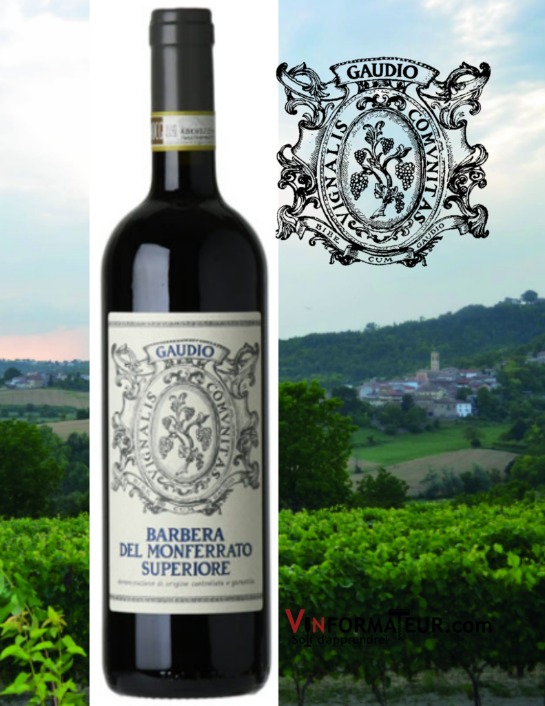 Gaudio, Barbera del Monferrato Superiore DOCG, 2017, cépages: Barbera 85%, Freisa 15%, alc. : 15%, 28,80$ (Tx incluses)/bouteille (caisse de 12 bouteilles).
