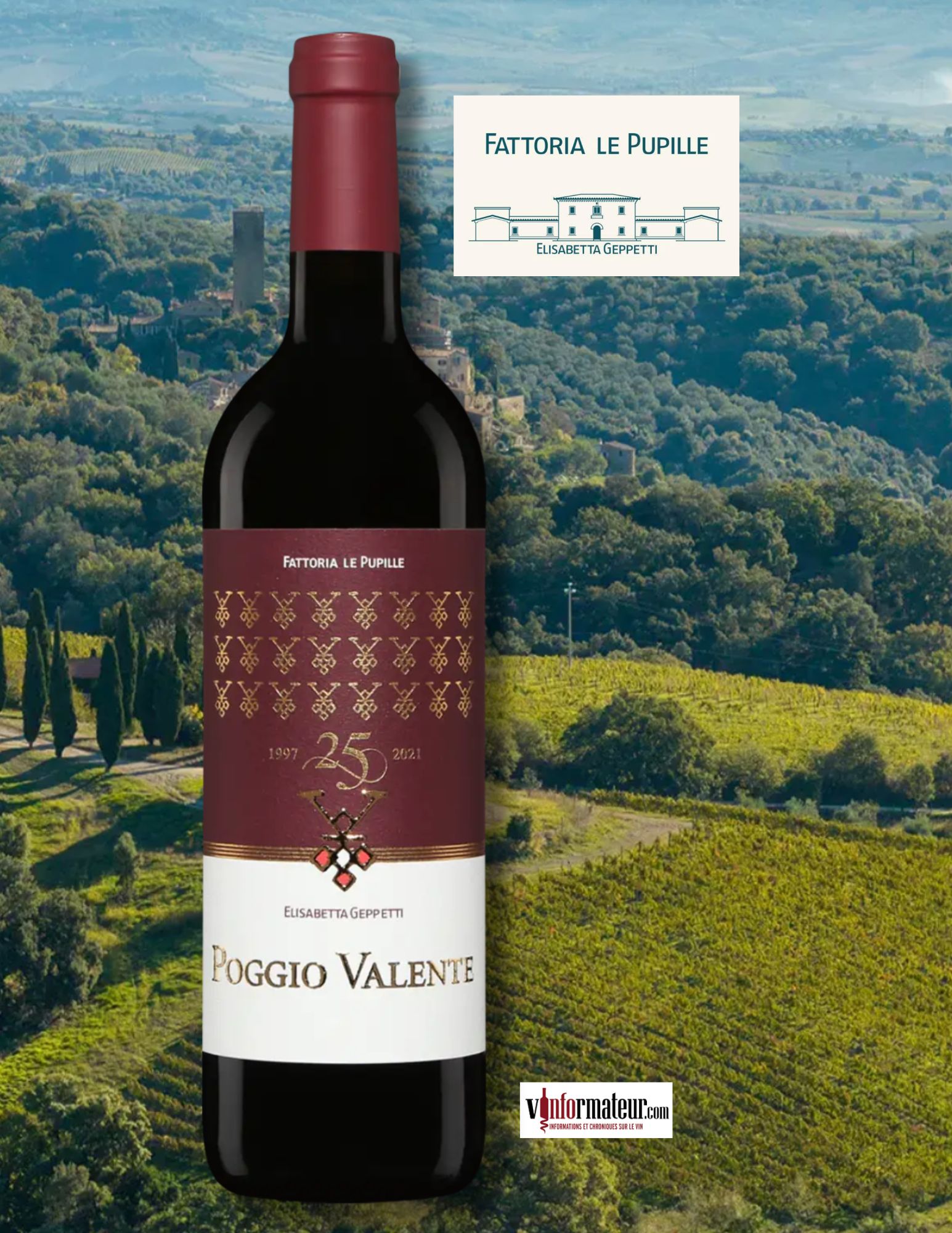Fattoria Le Pupille s’impose comme l’un des domaines les plus emblématiques de la Maremma toscane, situé entre Scansano et Magliano, dans le sud-ouest de la Toscane. Fondée dans les années 1970, la propriété connaît un tournant décisif en 1985 lorsque Elisabetta Geppetti en prend la direction. Visionnaire et profondément attachée à son territoire, elle transforme cette exploitation agricole en un domaine viticole reconnu, contribuant à repositionner la Maremma comme un terroir capable de produire des vins de grande qualité. Surnommée « la Dame du Morellino », Elisabetta Geppetti a joué un rôle clé dans la promotion de cette appellation, dont elle a présidé le consortium après sa fondation en 1992.