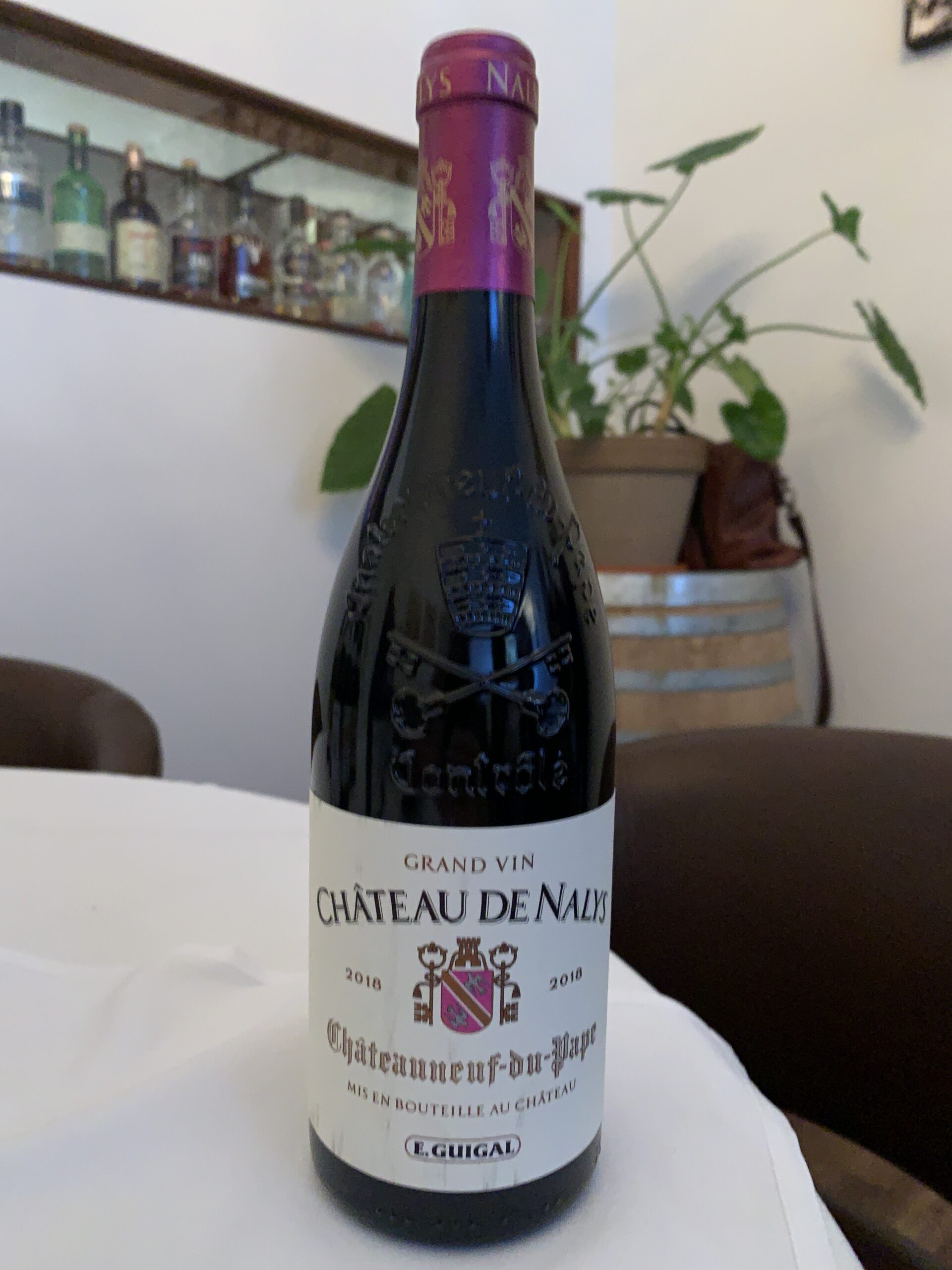 E. Guigal, Château de Nalys, Châteauneuf-du-Pape AOC, 2017, 127,50$, cépages : 60% Grenache,30% Syrah, 8% Mourvèdre, 2% Counoise et Muscardin, alc. : 15%, code SAQ : 14728617.