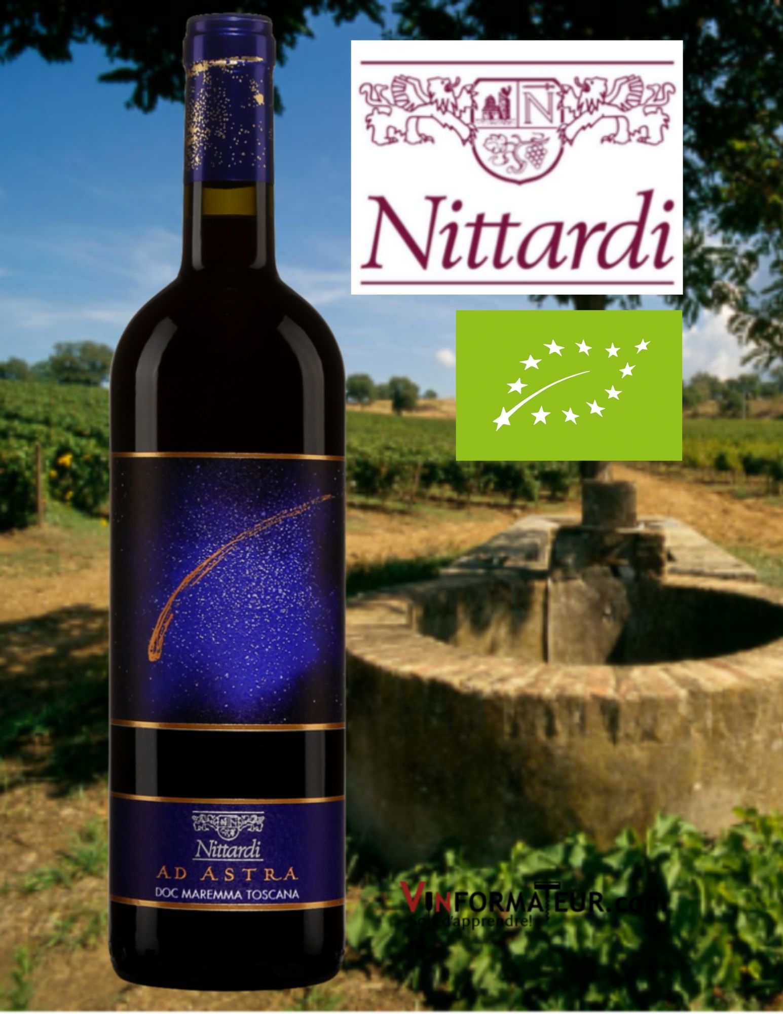 Nittardi, Ad Astram, Italie, DOC Maremma Toscana, vin rouge organique, 2018, 33,75$, cépages : Sangiovese 50 %, Cabernet-sauvignon 25 %, Merlot 25 %, sucre : 2.2 g/l, alc. : 13.5%, code SAQ : 14471680.