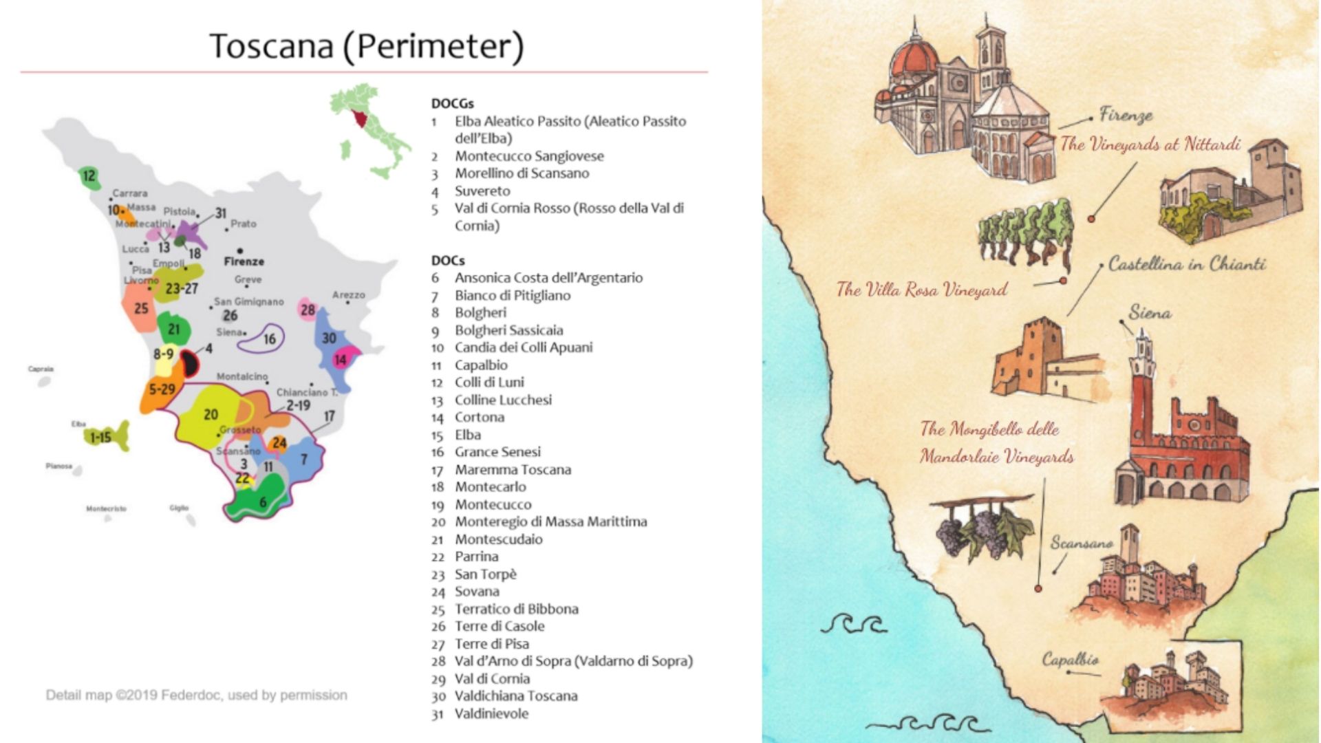 La maison possède des vignobles dans la région du Chianti ainsi qu’à Maremma dans le sud de l’Italie ce qui représente environ 17 ha de vignes et d’oliveraies le tout entouré de boisés.