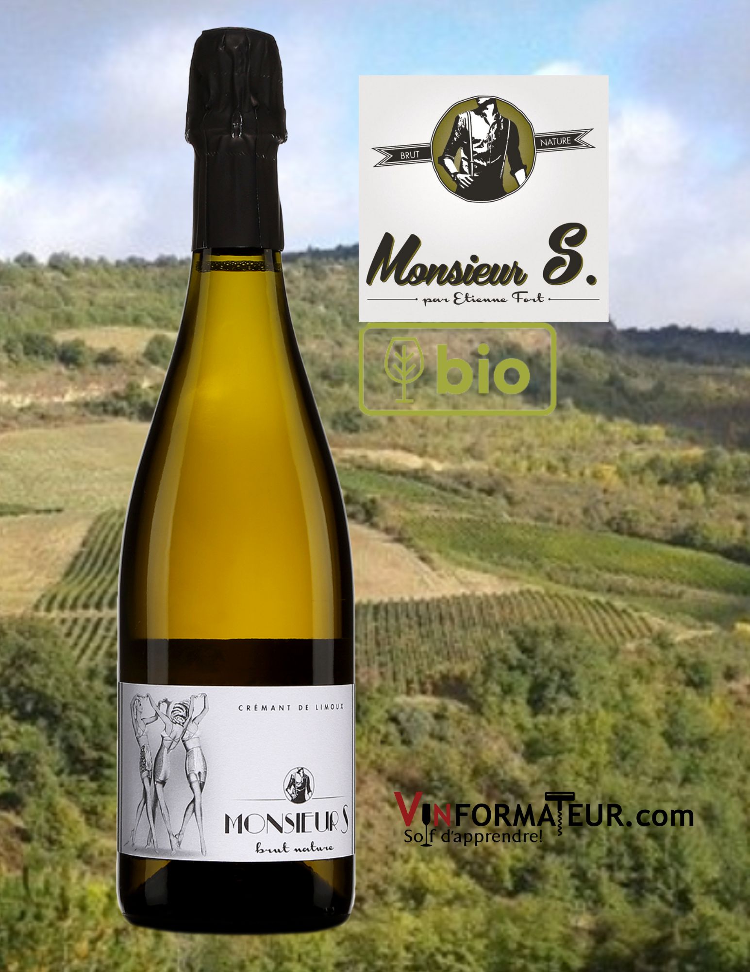 Monsieur S., AOP Crémant de Limoux, Brut nature, France, Languedoc-Roussillon, vin effervescent bio bouteille