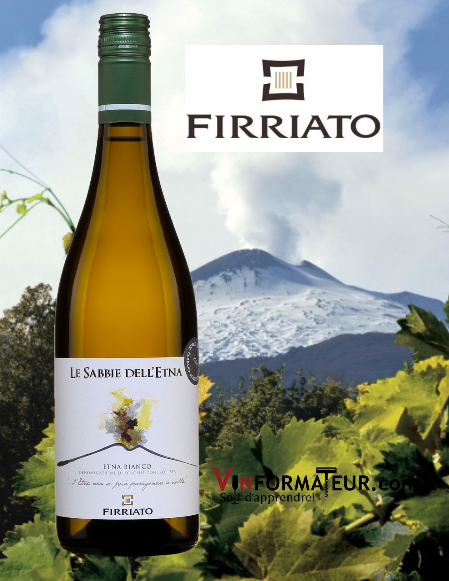 Le Sabbie Dell’etna, Italie, Sicile, Etna Bianco, Domaine Firriato, vin blanc, 2021, 21,90$, cépages : Carricante 80 %, Catarratto 20 %, sucre : 1.8 g/l, alc. : 12.5%, code SAQ : 14427638.