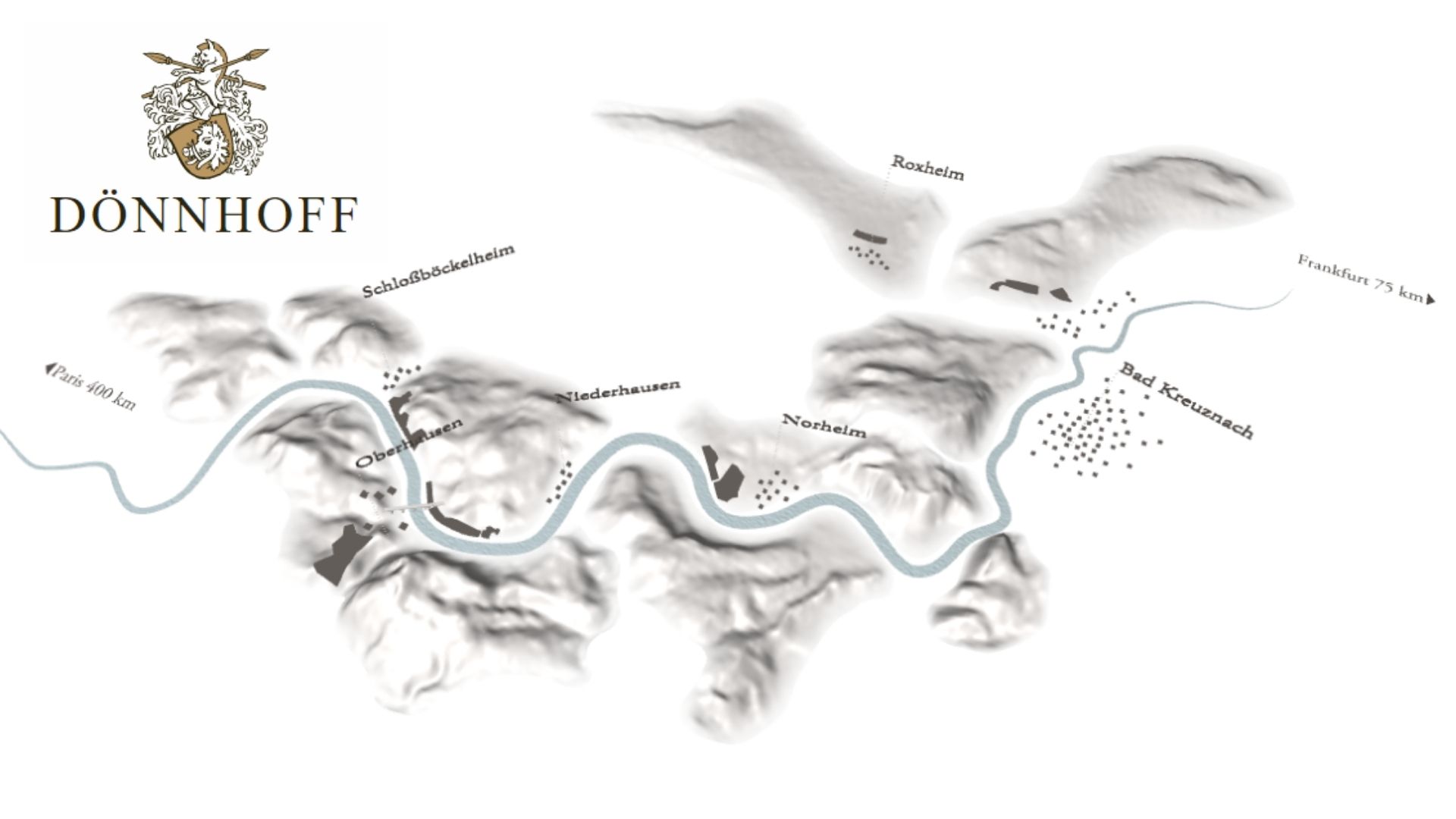 La cave Hermann Dönnhoff fondée il y a plus de 250 ans est située sur la Moyenne Nahe et est entourée d’une vallée pittoresque entre Bad Kreuznach et Schloßböckelheim, avec ses pentes abruptes grandioses. Cette région est reconnue pour sa réputation de vins de Riesling de qualoité supérieure.
