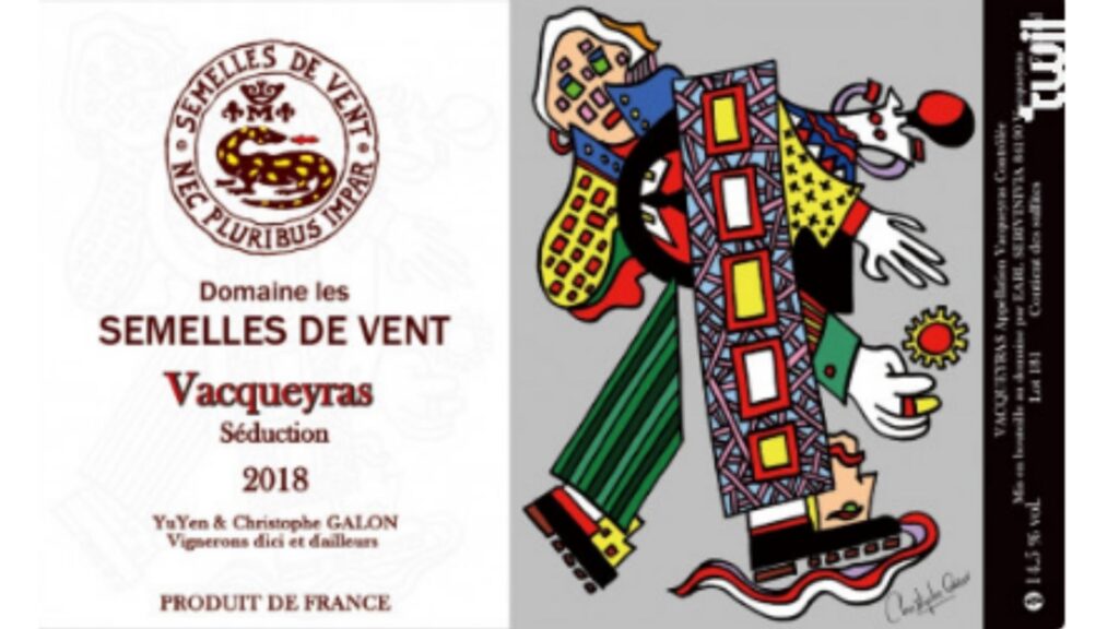 L’image est une œuvre du vigneron car ce sont ses peintures qui illustrent ses étiquettes. Tous les ans, le couple choisit une nouvelle illustration pour chacun de ses vins.
