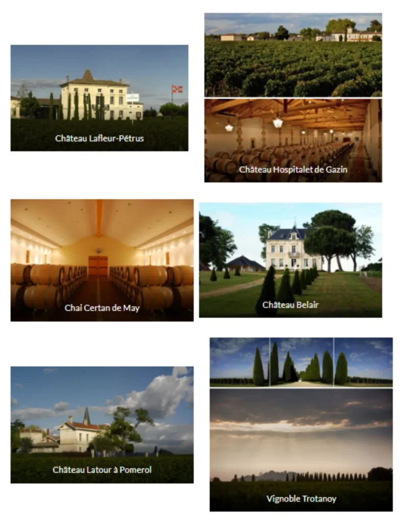 Négociant de vins primeurs et livrables, ils sont aussi propriétaires et producteurs de plusieurs Grands Crus, tels les Châteaux La Fleur-Pétrus et Trotanoy à Pomerol, Château Bélair-Monange, Premier Grand Cru Classé, à Saint-Émilion, ainsi que Dominus Estate et Ulysses au coeur de la Napa Valley en Californie. Ils assurent la distribution exclusive mondiale d’une vingtaine de vignobles prestigieux de la Rive Droite.