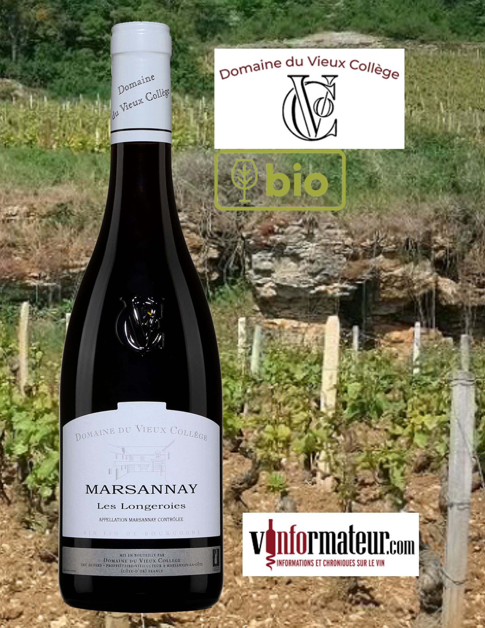 Domaine du Vieux Collège, Lieux dit Les Longeroies, Bourgogne, Marsannay, vin rouge bio, 2020, 46,50$, cépage : Pinot noir 100%, sucre : 1.8 g/l, alc. : 13.5 %, code SAQ : 14977541.