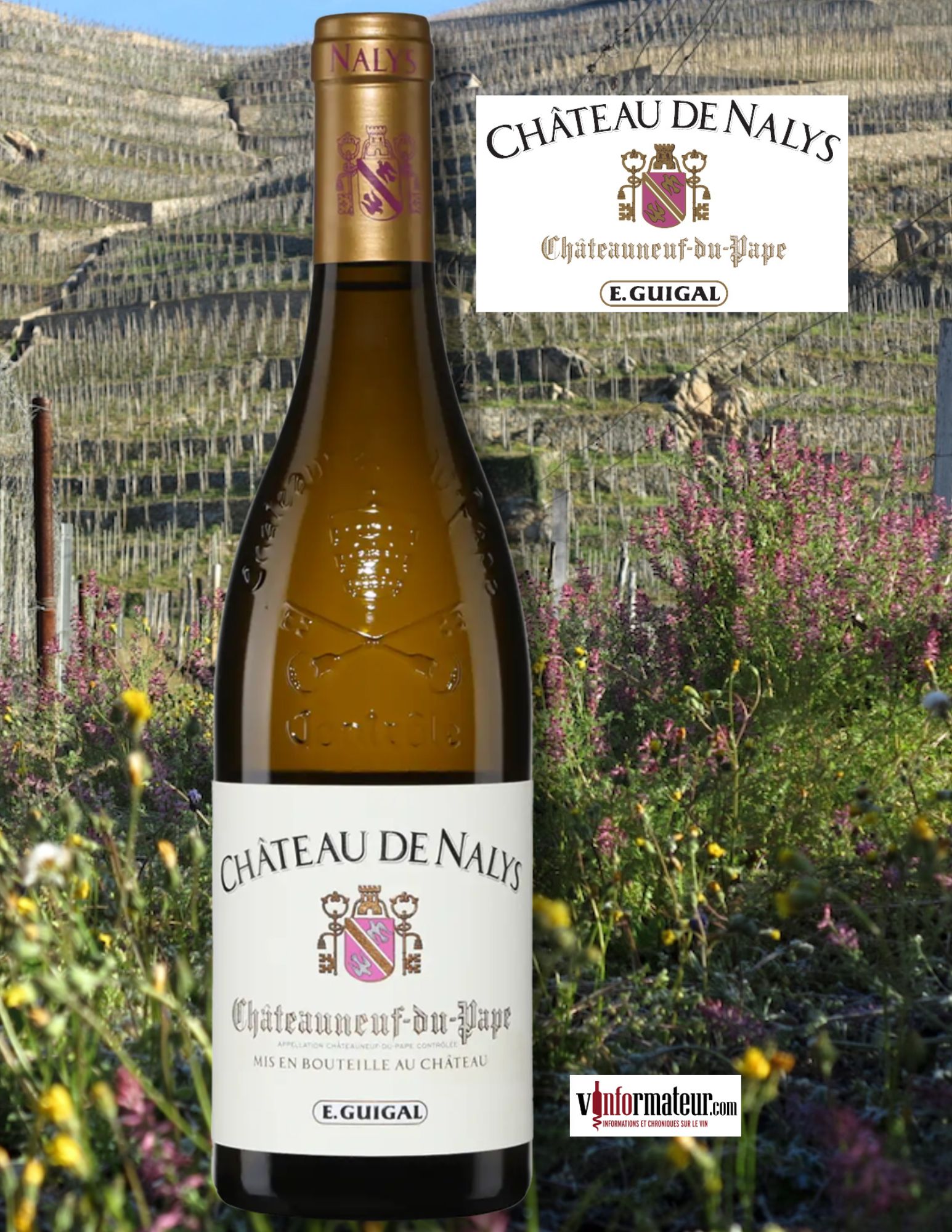 E. Guigal, Châteauneuf-du-Pape, Château de Nalys blanc, 2023, 146,75$, cépages : Roussanne 40%, Grenache blanc 40%, Clairette 18%, Picardan 2%, alc. : 14%, code SAQ : 15515867.