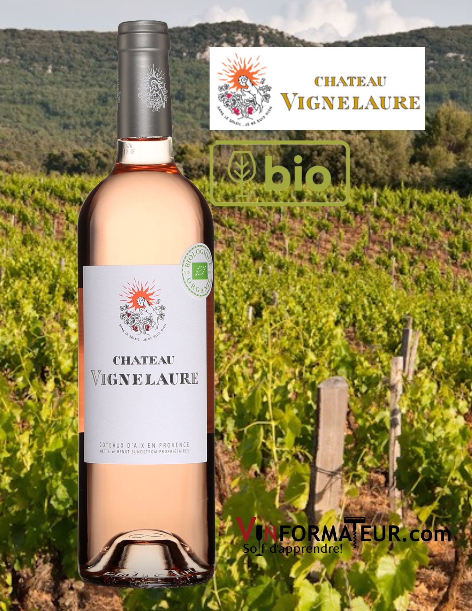 Château Vignelaure, Coteaux-d’Aix-en-Provence, vin rosé bio, 2021, 26,10$, cépages : Grenache 40 %, Cabernet-sauvignon 30 %, Syrah 30 %, sucre : moins de 1.2 g/l, alc. : 13%, code SAQ : 12374149.
