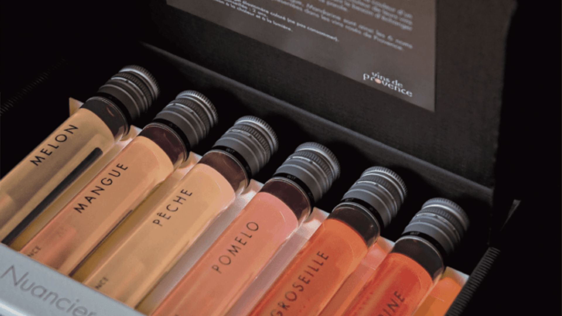 Les couleurs: dans l’ordre de préférence des consommateurs : Pêche, Melon, Mangue, Pomelo, Mandarine et Groseille sont les noms des 6 principales couleurs des vins rosés élaborés en Provence.