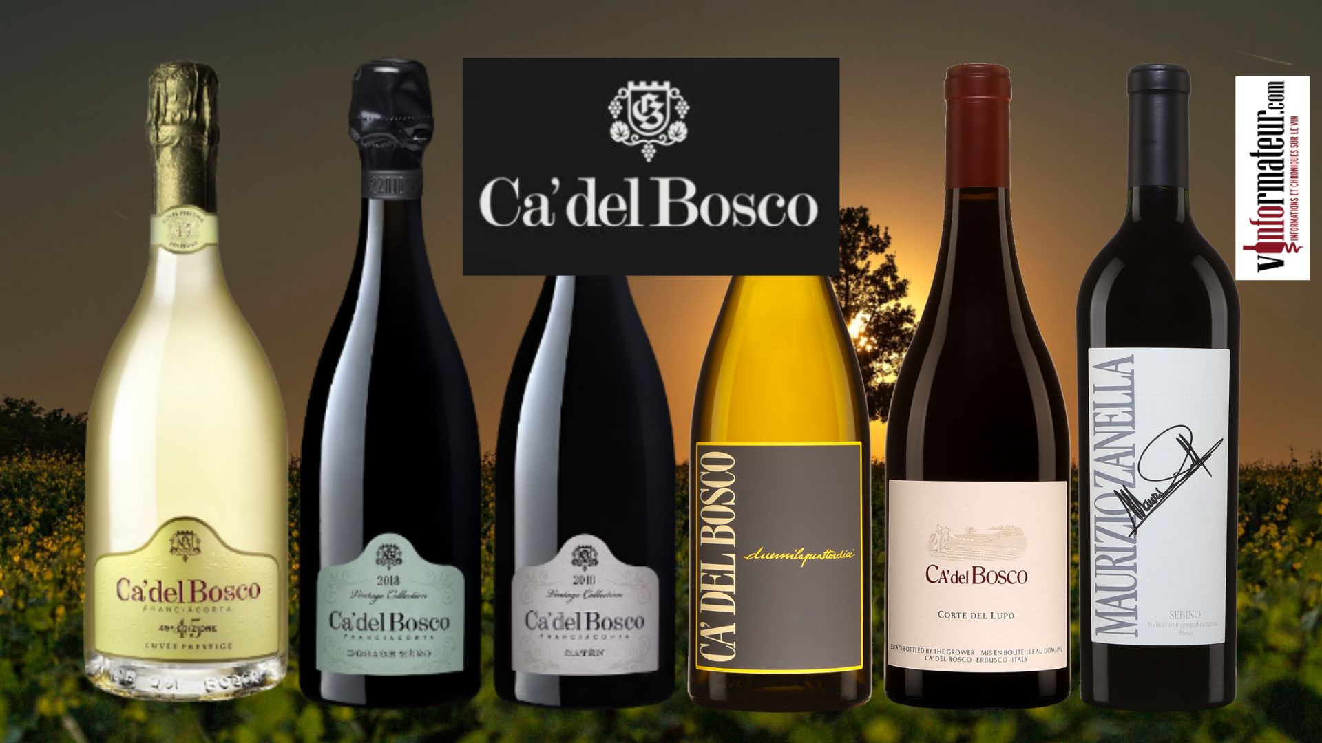 Dégustation: Ca'Del Bosco: Cuvée Prestige, 45e edizione, Franciacorta Brut, Satèn, Franciacorta, Dosage Zéro, Curtefranca Bianco DOC, Chardonnay, Corte del Lupo Rosso, Curtefranca Rosso DOC, Maurizio Zanella, Rosso del Sebino IGT bouteilles