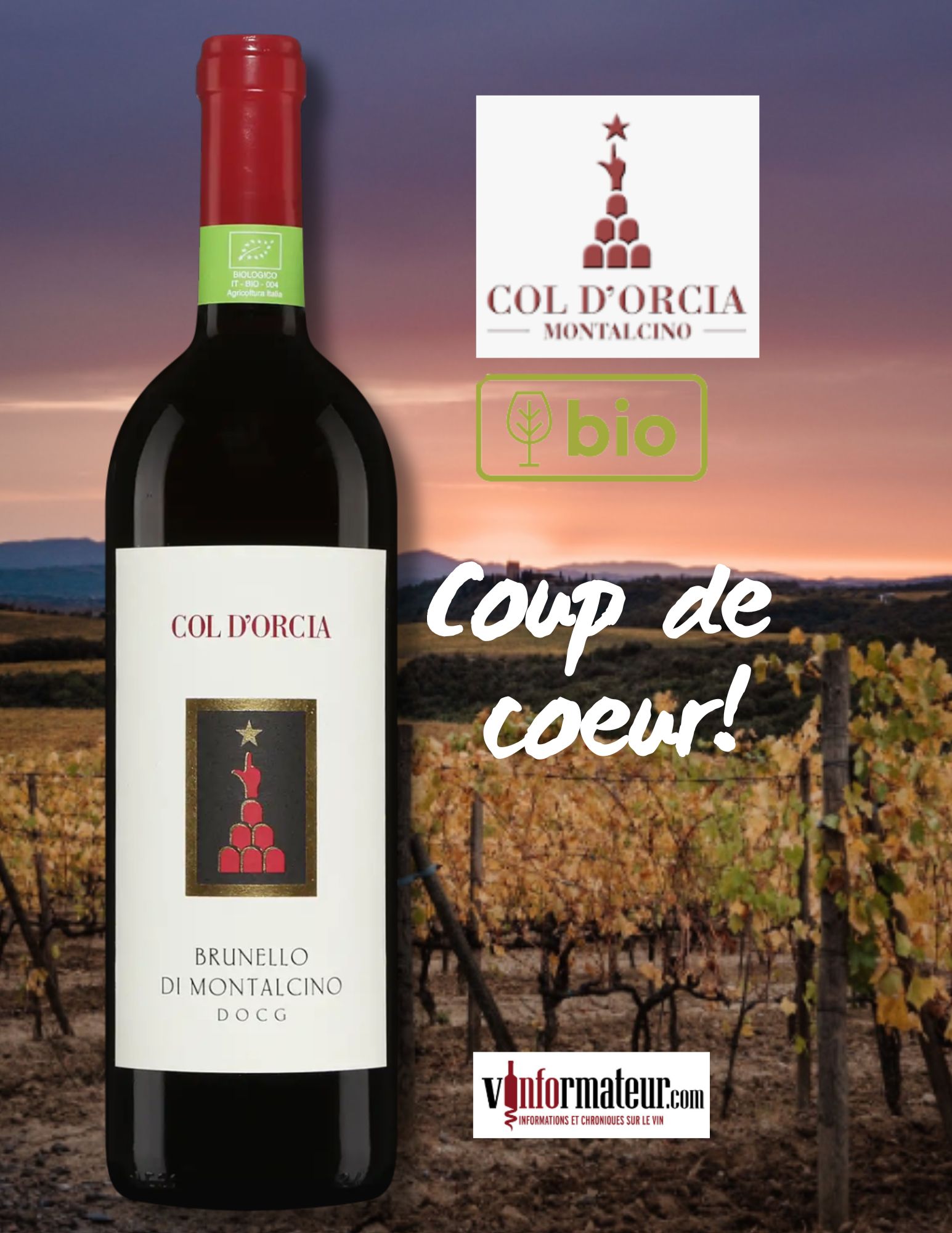 Col d’Orcia, Brunello di Montalcino DOCG, Italie, vin rouge bio, 2018, 61,25$, cépage : Sangiovese 100%, sucre : 2.9 g/l, alc. : 14.5%, code SAQ : 15278996.