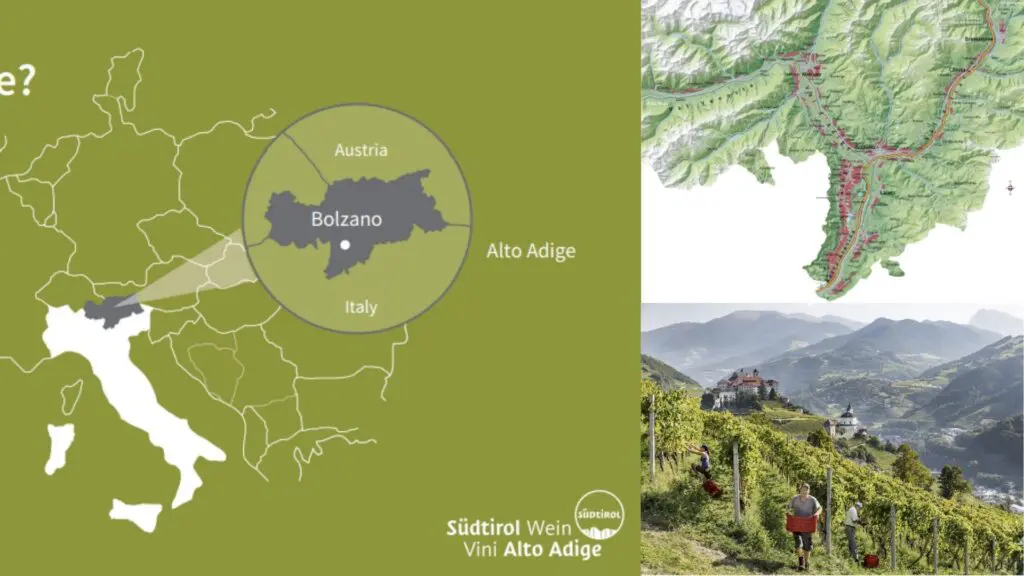 Alto Adige – Südtirol est la région la plus septentrionale d’Italie, située immédiatement au sud de l’Autriche et à l’ouest de la Suisse. Elle se trouve dans la chaîne de montagnes des Alpes. Les montagnes affectent fortement la topographie, le climat et les raisins qui peuvent y pousser.