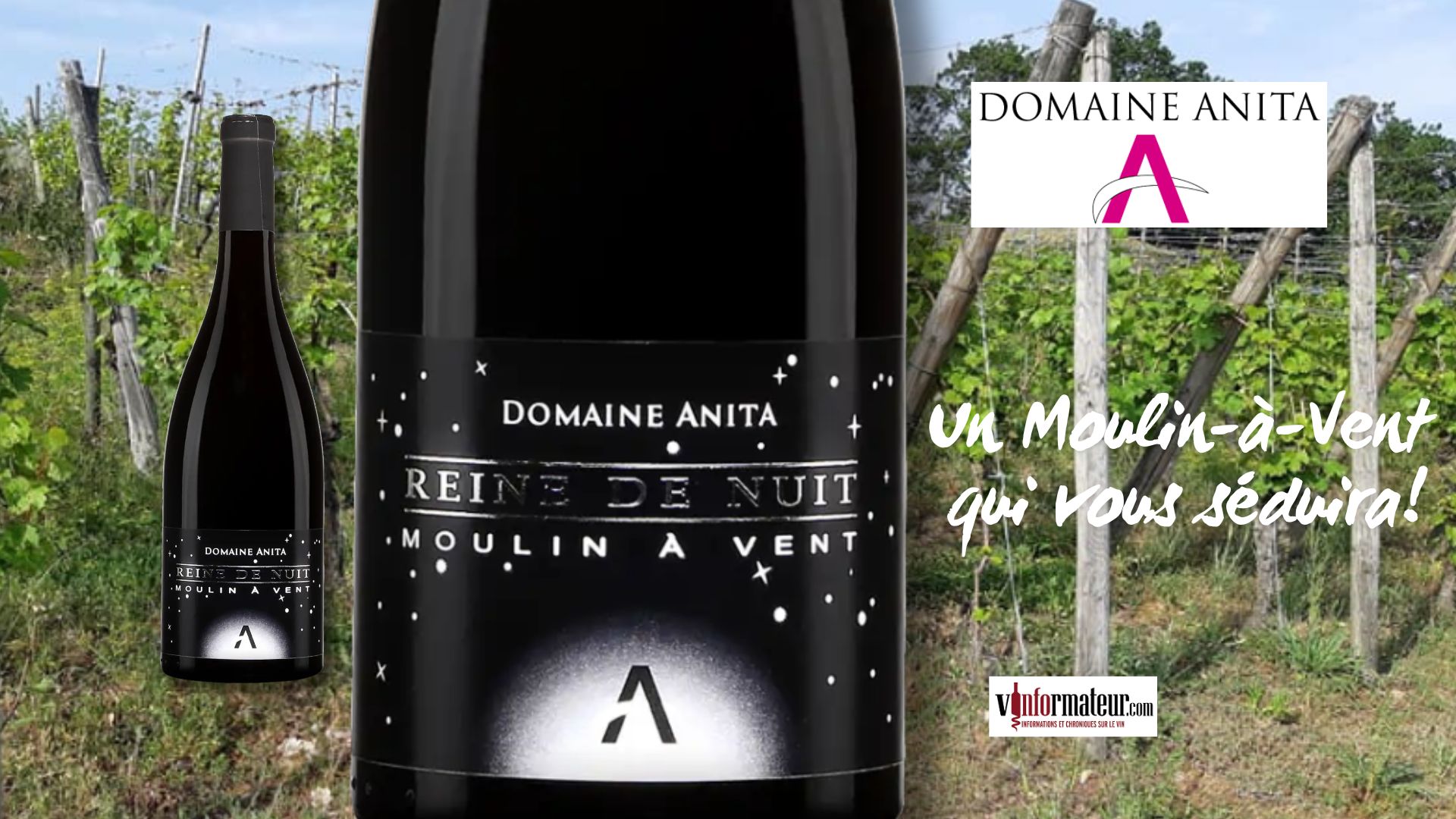 Reine de Nuit, Moulin-à-Vent, Beaujolais, »Aux Caves », Domaine Anita, Anita Neveu, 2022, 36,50$, cépage : Gamay 100%, sucre : 1.6 g/l, alc. : 13.5%, code SAQ : 13212563.