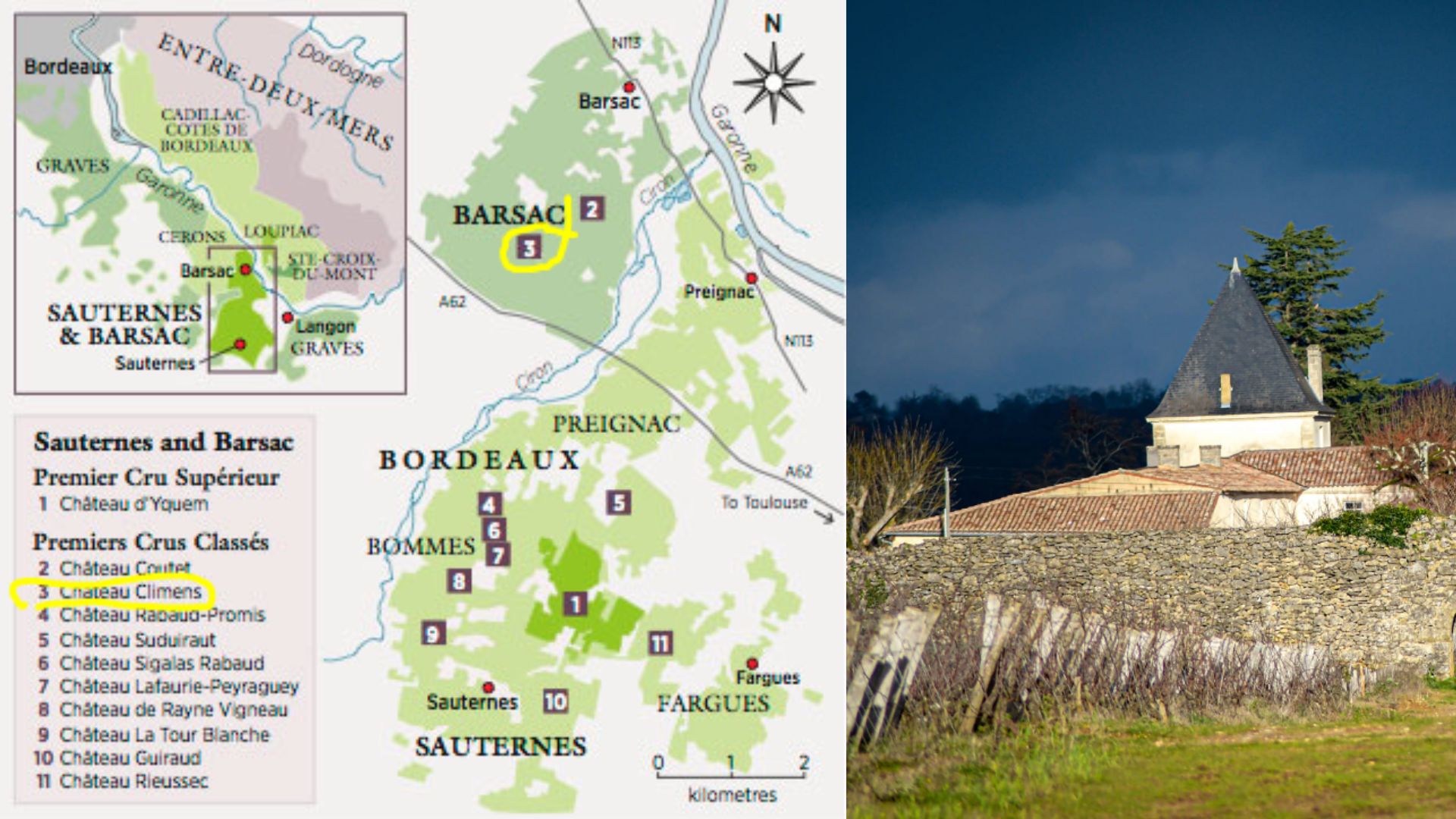Le vignoble de 1900 hectares s’étend sur cinq communes : Sauternes, Barsac, Bommes, Fargues, et Preignac. Elles bénéficient toutes de l’appellation Sauternes mais, à Barsac, les vignerons ont le choix entre l’AOP Sauternes et l’AOP Barsac. Les 2 AOP répondent au même cahier des charges.