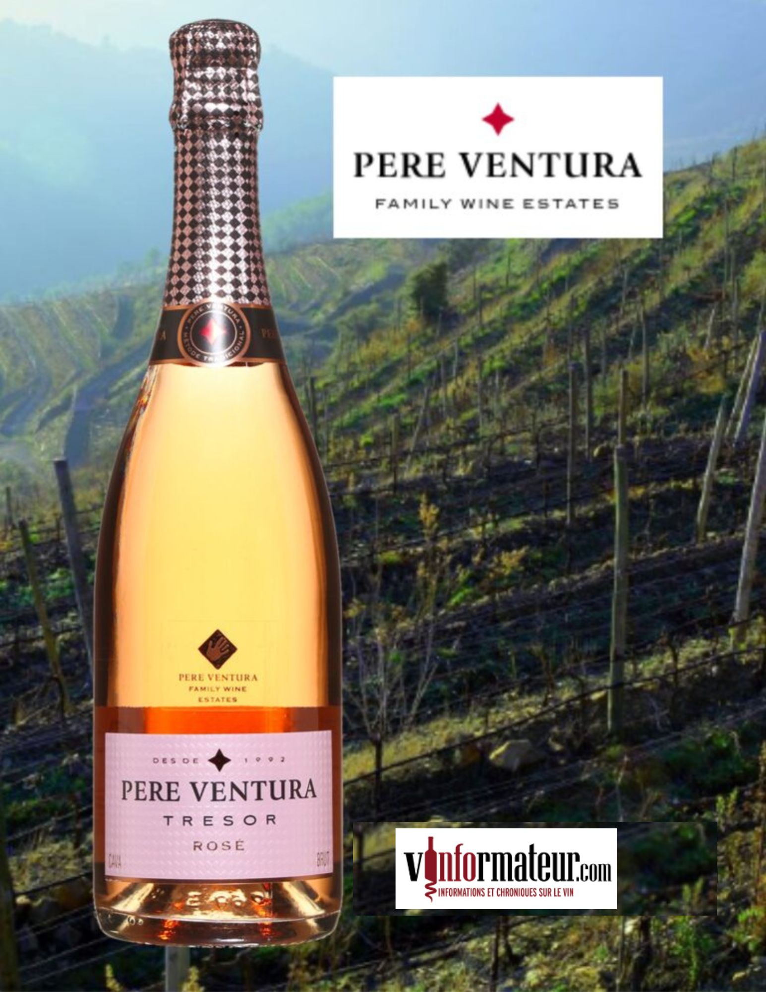 Pere Ventura, Tresor, Cava, Rosé Brut, Espagne, Conca de Barbera, 21,45$, cépage : Trepat 100%, sucre : 15 g/l, alc. : 11.5%, code SAQ : 15108591.