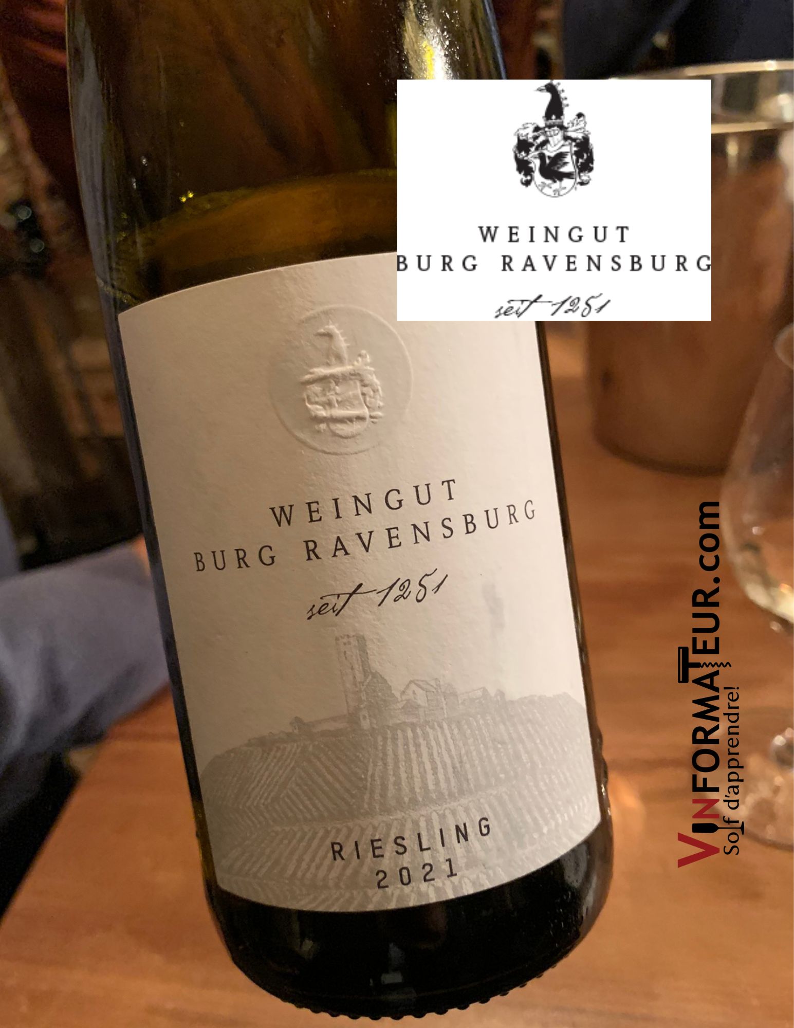 Riesling, Weingut Burg Ravensburg, Allemagne, Baden, Sulzfed, VDP Ortswein, vin blanc bio (biodynamie), 2021 (2020 disponible), 18,70$, cépage: Riesling 100%, sucre: 8.2 g/l, alc.:11.5%, code SAQ: 13453762.