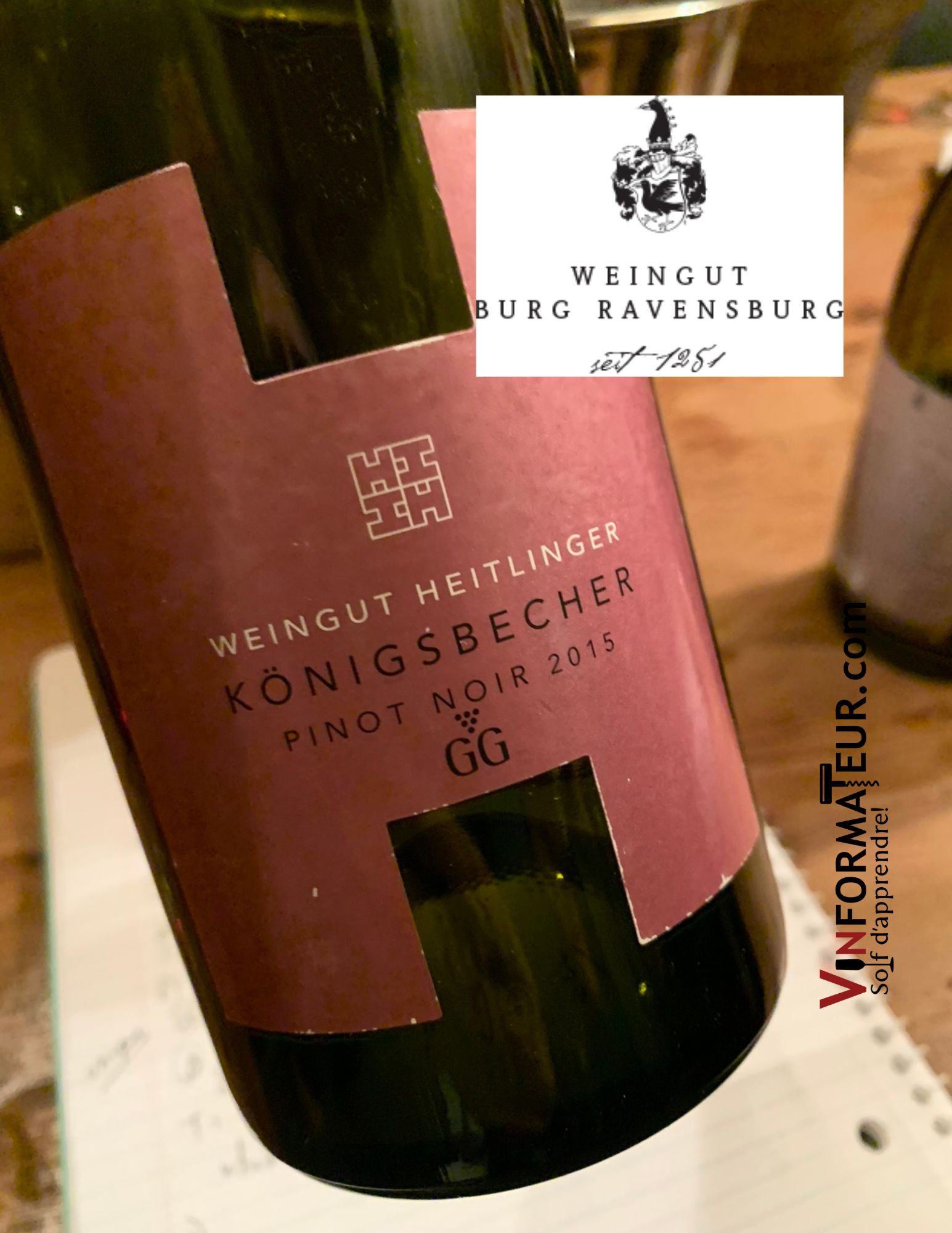 Pinot Noir, Konigsbecher, Weingut Heitlinger, Allemagne, Qualitatswein QbA, Grosses Gewächs, vin rouge bio, 2015, 75,00$.