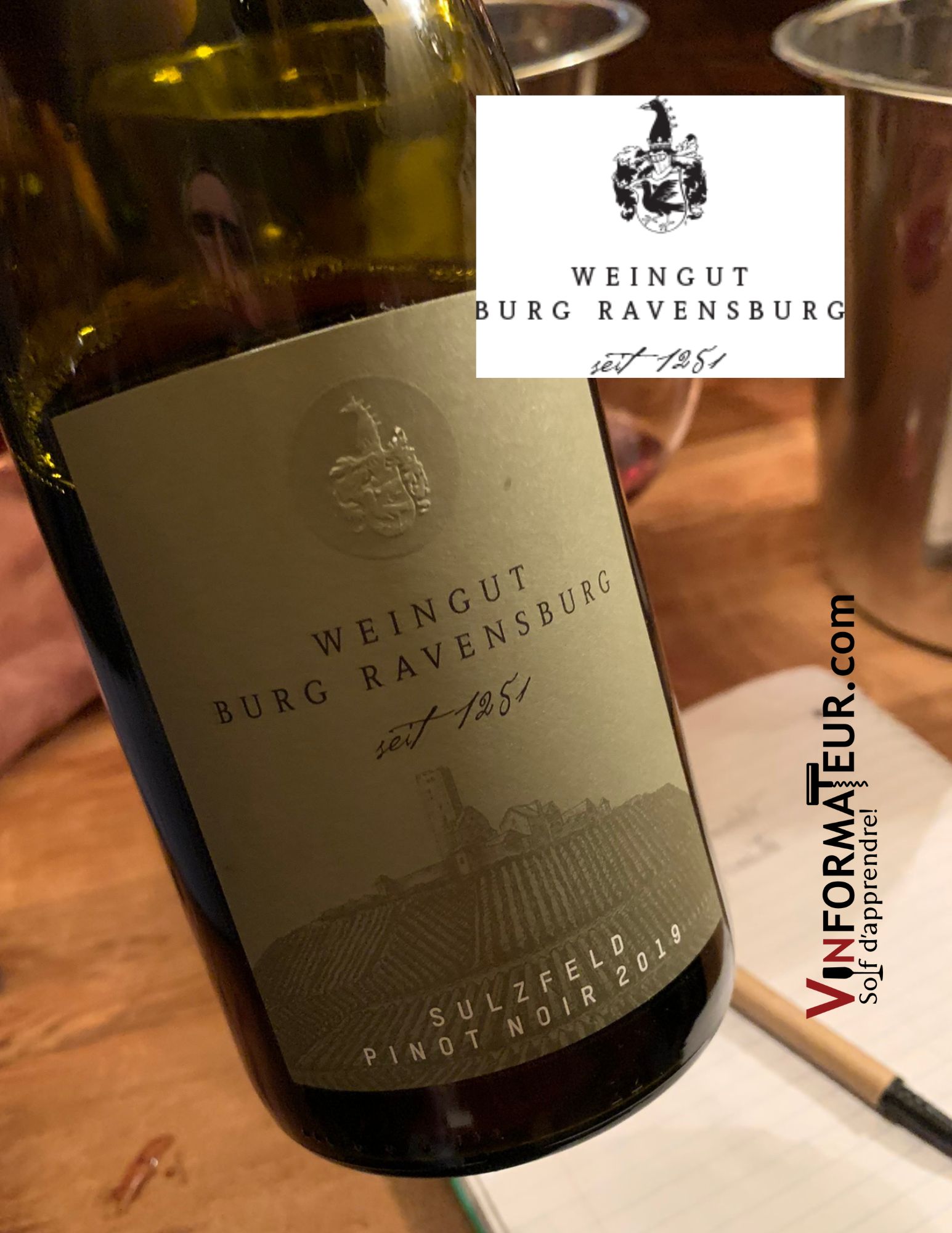Weingut Burg Ravensburg, Pinot Noir, Allemagne, Baden, Sulzfeld, VDP Ortswein, vin rouge bio (biodynamie), 2019, 21,80$, sucre: 1.4 g/l, alc.: 12.5%, code SAQ: 13859501.
