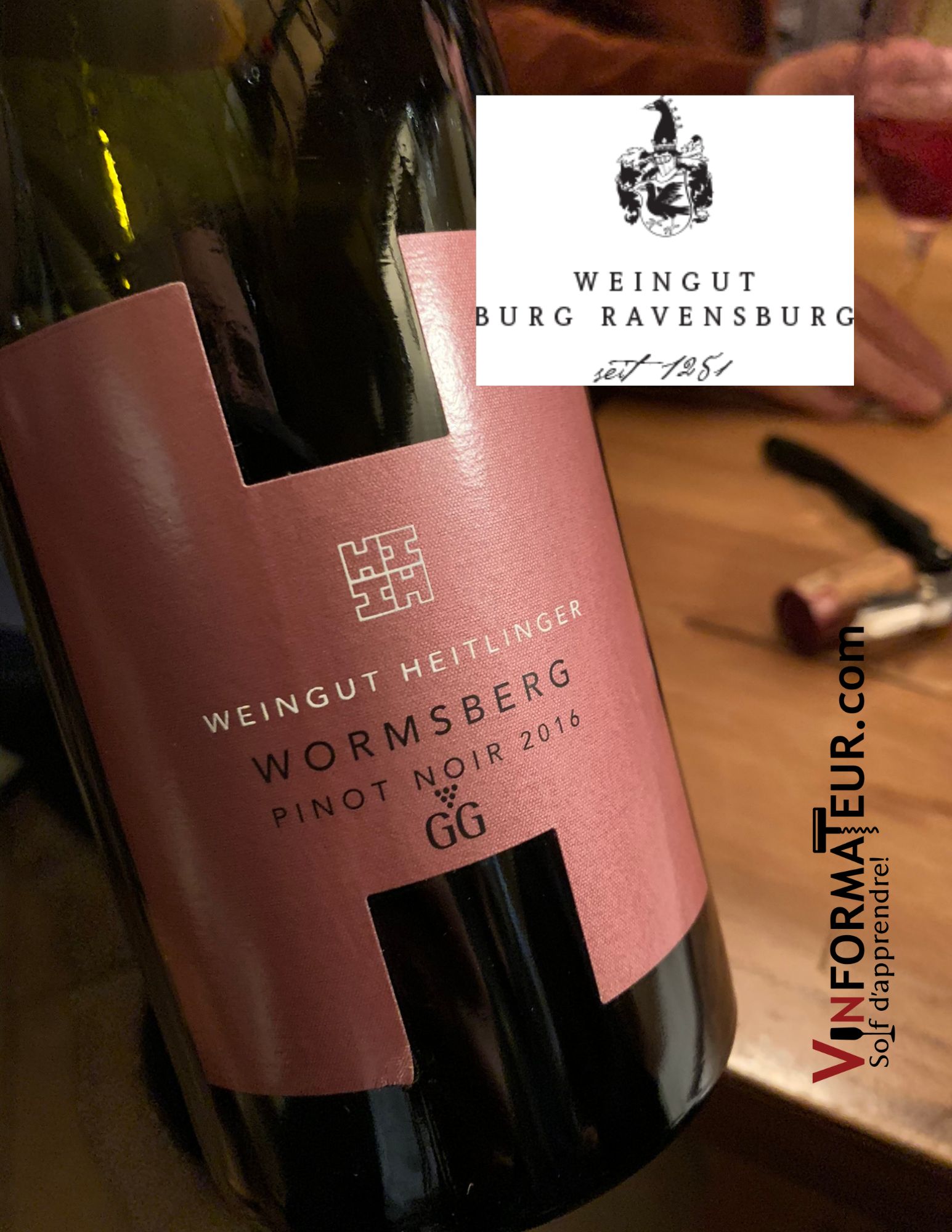 Pinot Noir, Trocken, Wormsberg, Weingut Heitlinger, Allemagne, Qualitatswein QbA, Grosses Gewächs, vin rouge bio, 2016, 175,50$, alc.: 12.5%, code SAQ: 14212717