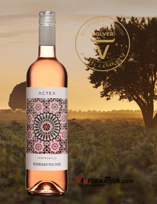 Actea, Bodegas Volver, Espagne, Castilla, vin rosé, 11,90$, 2020, cépage : Tempranillo 100%, sucre : 2.3 g/l, alc. : 12.5%, code SAQ : 14396659.