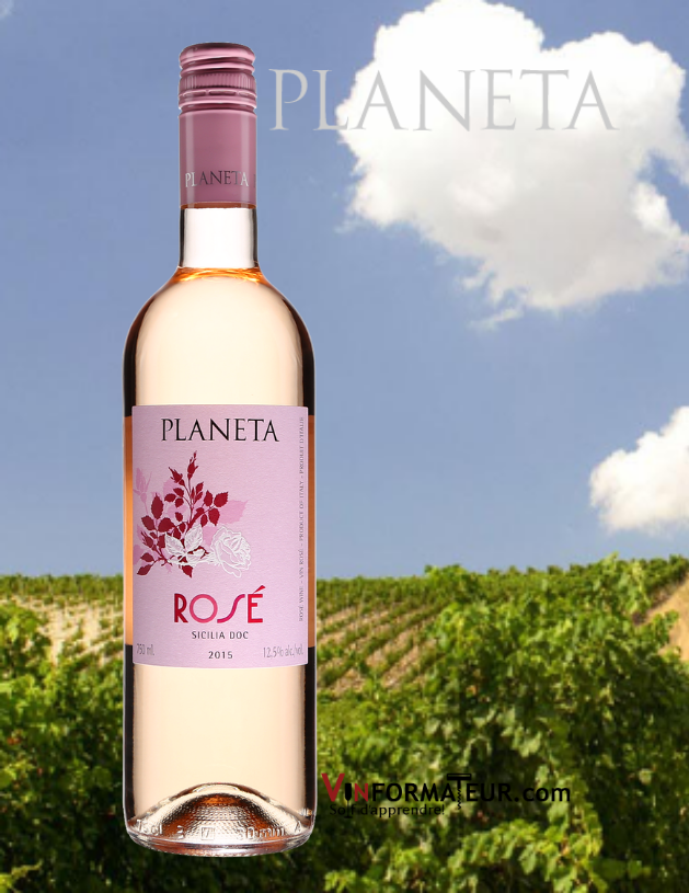 Planeta, Italie, Sicile DOC, vin rosé, 2020, 16,95$, cépages : Nero d’Avola 50 %, Syrah 50 %, sucre : 1.8 g/l,alc. : 12.5%, code SAQ : 12818361.