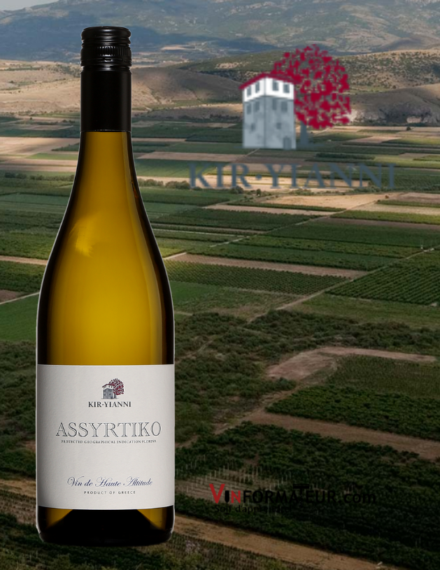 Kir Yianni, Assyrtiko, Vin de haute altitude, Grèce, Macédoine, vin blanc, 2019, 18,05$, sucre : 1.5 g/l, alc. : 13%, code SAQ : 13990592.