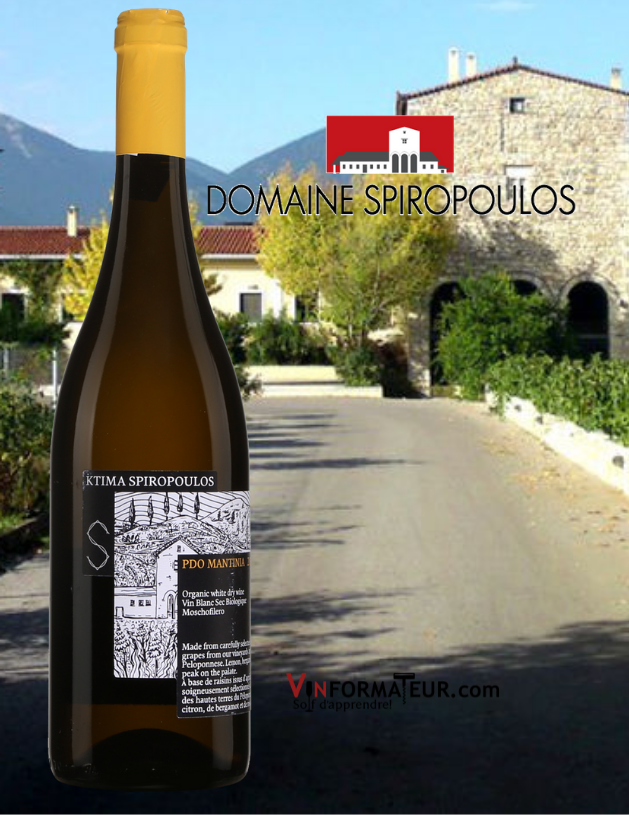 Ktima Spiropoulos, PDO Mantinia, Grèce, 2020, vin blanc bio, 16,25$, cépage : Moschofilero 100%, sucre : 1.7 g/l, alc. :12%, code SAQ : 13190982.