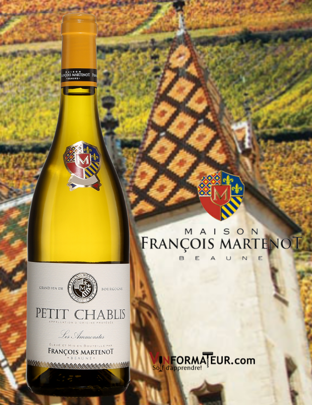 Petit Chablis, Les Ammonites, France, Bourgogne, Chablis, François Martenot, vin blanc, 2020, 22,00$, cépage : Chardonnay 100%, sucre : 1.3 g/l, alc. : 12%, code SAQ : 14168411.