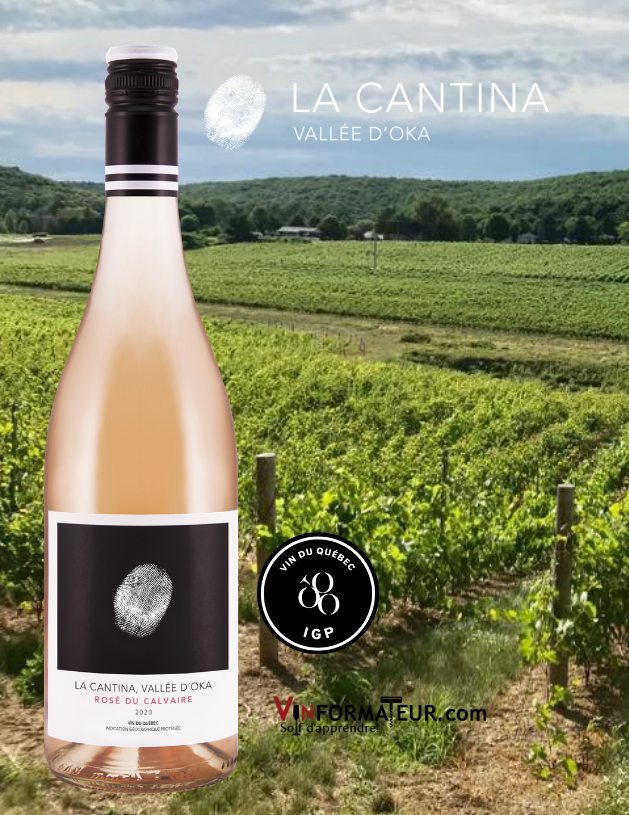 La Cantina, Rosé du Calvaire, L’Empreinte distinctive du Vigneron, Vignoble La Cantina, Québec, Vallée d’Oka, 2020, 19,95$, cépages : Pinot noir 76%, Chardonnay 24%, sucre : moins de 1 g/l, alc. : 12.5%, code SAQ : 13835648.