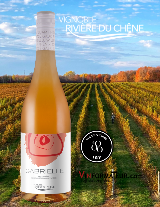 Gabrielle Rosé, Vignoble Rivière du Chêne, IGP Québec, Saint-Eustache, 2020, 15,75$, cépages : Seyval Noir 43%, Frontenac Gris 25%, Frontenac rouge 18,5%, Sainte-Croix 8,5%, Pionnier 5%, sucre : 4.0 g/l, alc. : 13.0 %, code SAQ : 10817090.