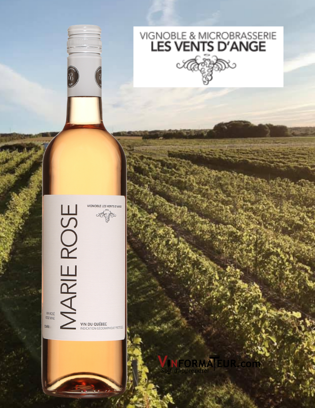 Marie-Rose, vin rosé, Vignoble Les Vents d’Ange, Origine Québec, Saint-Joseph-du-Lac, 2020, 13,00$, cépage : Pionnier, sucre : 4.7 g/l, alc. : 12.5%, code SAQ : 12123657.