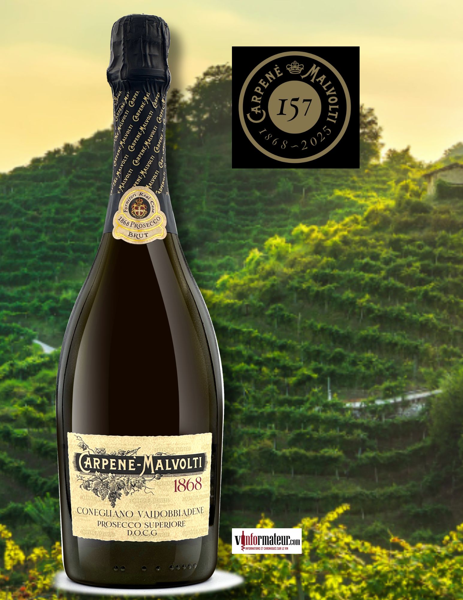 Il est produit par la plus vieille maison de Prosecco. En effet c’est en 1868 qu’elle a été la première à utiliser le mot Prosecco sur ses bouteilles. Elle est aujourd’hui dirigée par la 5e génération de la famille Carpenè.