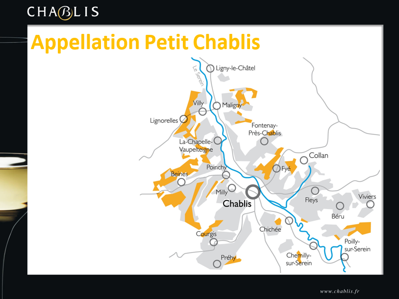 Petit Chablis : ce sont des vins de plaisir immédiat, faciles à boire, accessibles à tous. Surtout, ne vous laissez pas influencer par le mot ‘’Petit’’. Ils reflètent le profil aromatique des Chablis.