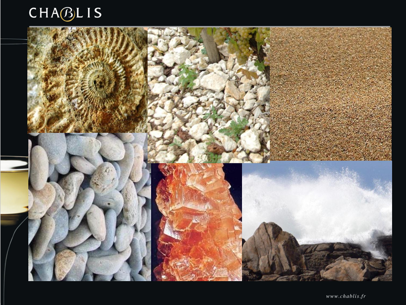 Le terroir de Chablis est unique. Il est composé d’un sol calcaire, formé au Kimméridgien (il y a environ 150 millions d’années), lorsqu’une mer chaude et peu profonde recouvrait Chablis. Il contient des fossiles de petites huîtres appelées Exogyra virgula.