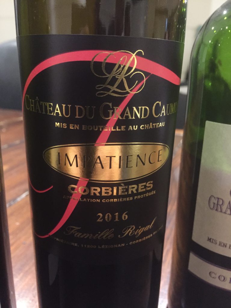 Château Du Grand-Caumont, Cuvée Impatience, 2016, $18.60, cépages : Carignan Noir 45%, Syrah 45%, Grenache Noir 10%, code SAQ : 978189.