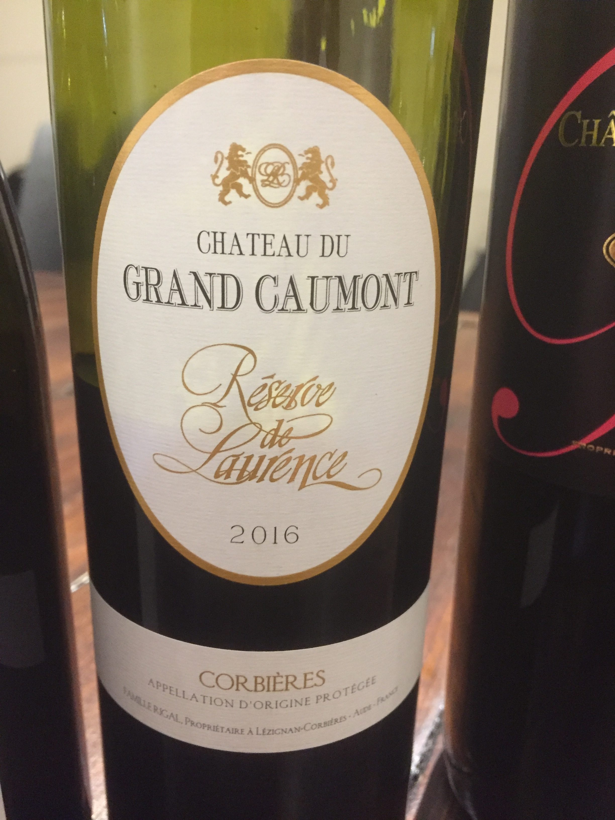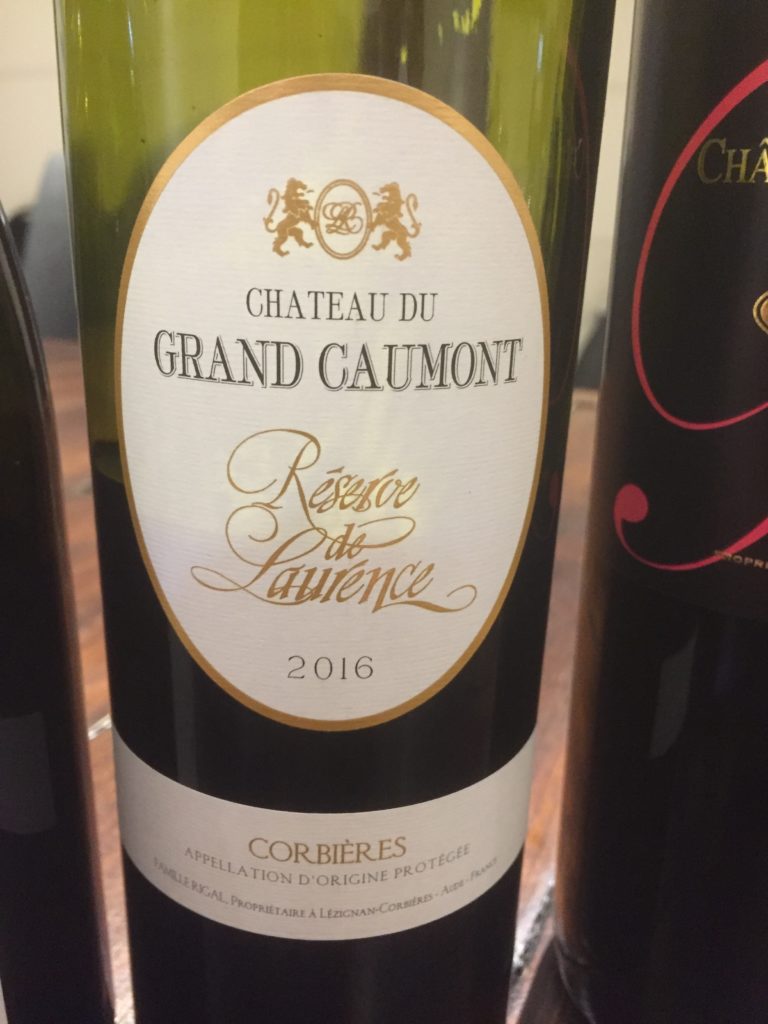 Château Du Grand-Caumont, Réserve de Laurence, 2016, cépages : Carignan Noir grappes entières 25%, carignan Noir égrappé 10%, Syrah en grappes entières 10%, Syrah égrappés 45%, Grenache Noir 10%.  Ce vin sera possiblement disponible en 2019 à la SAQ …