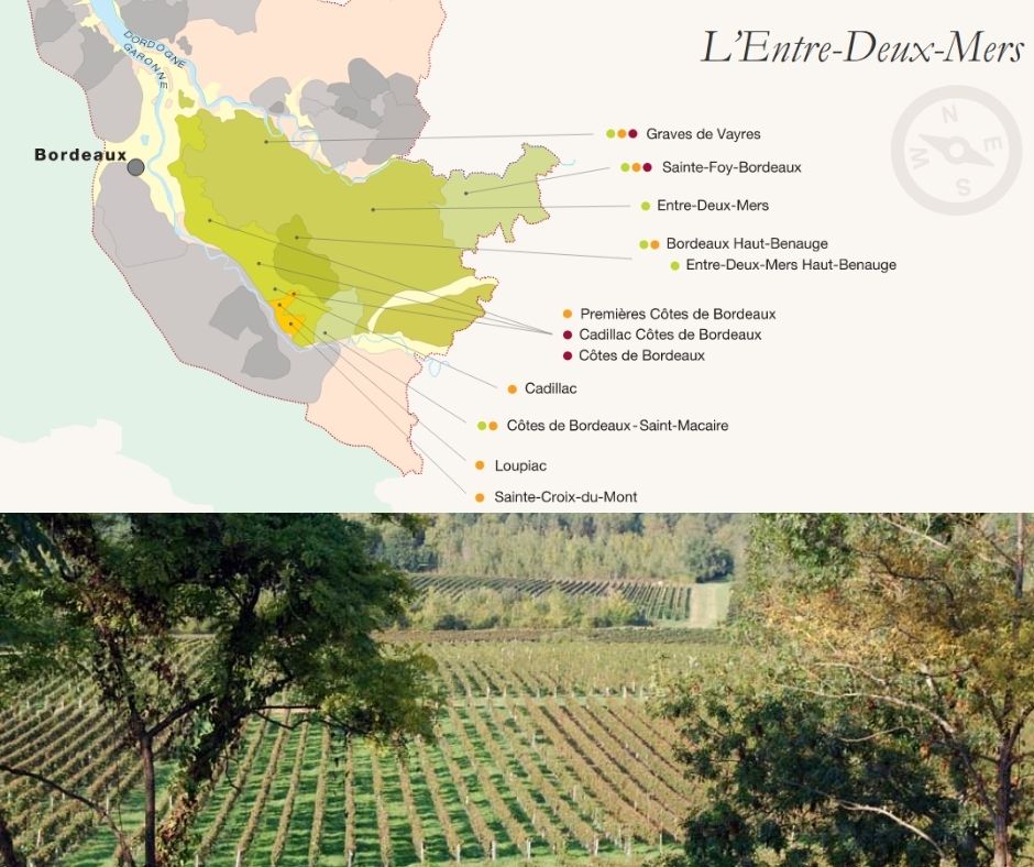 Ce qu’il y a de spécifique à ce vin d’Entre-Deux-Mers c’est l’ajout de 10% de Muscadelle qui lui apporte beaucoup de douceur et de rondeur. Une fois les vendanges terminées on procède une macération pelliculaire afin d’extraire les arômes. Puis fermentations thermorégulées, filtration des bourbes, élevage sur lies fines pendant 2 mois avec bâtonnage et élevage en cuve inox pendant 3 mois.