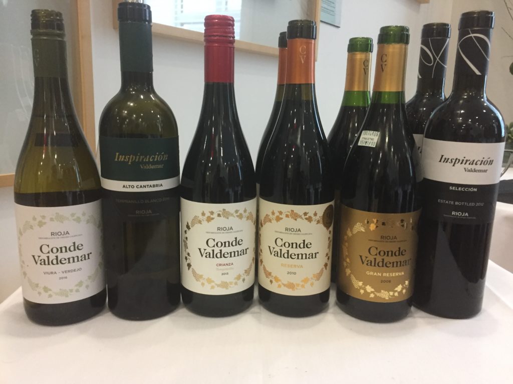 Nous avons dégusté 6 vins de la maison dont 4 de Conde Valdemar et 2 de la marque Inspiracion Valdemar.